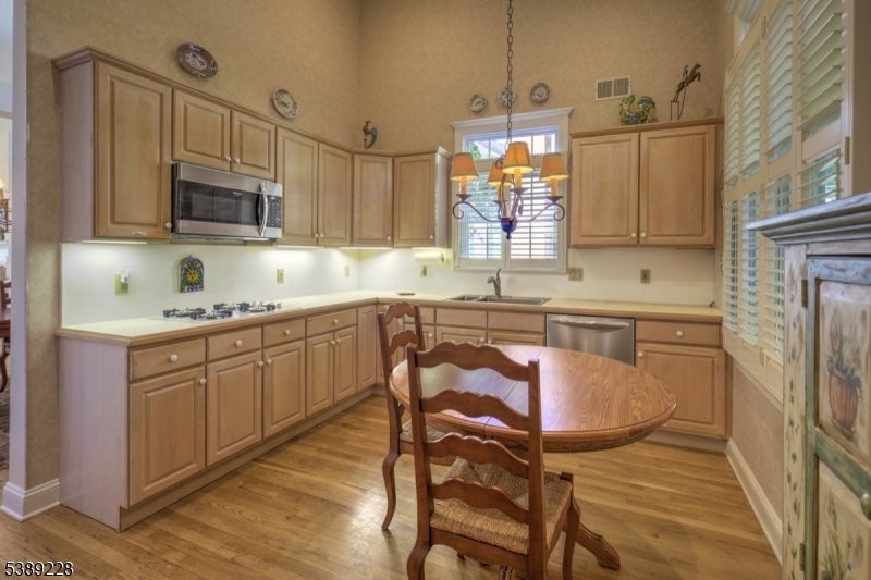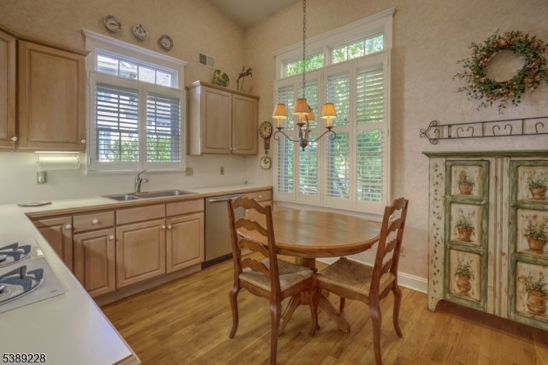 This beautifully maintained three bedroom, two full & two half bath townhome offers a rare opportunity to live in the sought-after Polo Club community. Designed for both comfort and style, it features an open floor plan that's perfect for casual living and elegant entertaining. Inside, you'll find formal living and dining rooms, a inviting gas fireplace, plantation shutters, and rich architectural details like built-in bookcases and hard wood floors. The eat-in kitchen and dedicated laundry room add everyday convenience, while the powder room and loft provide thoughtful extras. The first floor primary suite is a true retreat, complete with a walk-in closet, soaking tub, stall shower, and private water closet. The finished lower level adds versatility to the floor plan with a spacious gathering area, home office, half bath, and abundant storage space. Step outside to the private deck and enjoy a peaceful view surrounded by nature. The whole house GENERATOR, two-car garage and nearby guest parking add ease and practicality. Low Far Hills taxes and an unbeatable location. Walk to shops, restaurants, park, the NYC train. Minutes drive from major highways (Rt 78, Rt 287, and Newark Liberty Airport).
