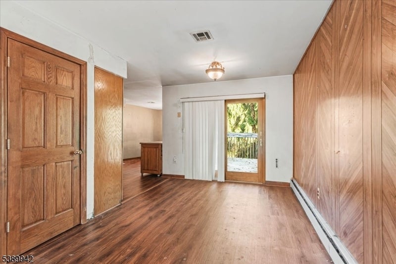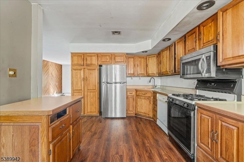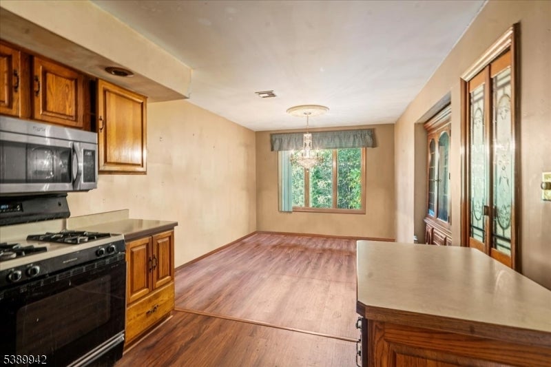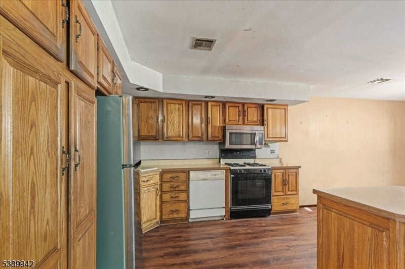 Welcome to this spacious raised ranch style home that perfectly combines comfort, functionality, and versatility. Featuring a center stairwell and beautiful hardwood flooring throughout, this residence offers 4 generous bedrooms and 3 full baths, making it ideal for those seeking flexible living space. Step into the main level, where the inviting eat-in kitchen boasts built in wooden cabinets, a pantry style layout, and stainless steel appliances for modern convenience. The separate dining area opens to a deck, perfect for entertaining or enjoying peaceful wooded views. The primary bedroom includes a walk-in closet and an en suite bath with a stall shower, while each bedroom is enhanced with ceiling fans for year-round comfort. The fully finished basement extends the homes versatility with a second kitchen featuring recessed lighting, a laundry room, and a private exterior entrance an excellent setup for extended living or guest accommodations. Outside, you will find a spacious backyard that can easily double as additional parking space, plus a 1 car attached garage. Nestled in a serene back to woods location, this home offers both privacy and convenience, situated near restaurants, schools, and parks. A wonderful opportunity to own a move in ready home that blends space, practicality, and charm in a peaceful setting!