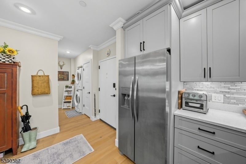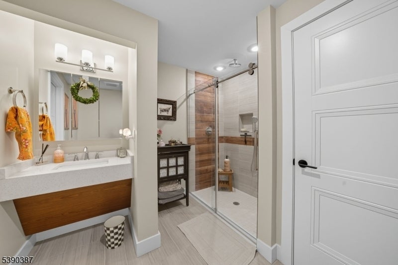 Welcome to Fox Crest, Rockaway's premier 55+ community! This three-story building that was built in 2020 is located inside the gated community of Fox Hill and offers underground parking with private storage space for each unit. Located on the second floor, close to the elevator, unit 208 boasts pride of ownership with 2 large bedrooms, 2 full bathrooms and lots of upscale finishes. The kitchen features mosaic glass tile backsplash, stainless steel appliances, undercabinet lighting and soft - close cabinetry. The flooring is hardwood throughout and custom tile in the bathrooms also feature glass barn shower doors. The primary suite is its own oasis with tall ceilings, large windows and a spacious walk-in closet with built- in organizers. The windows in the living room feature custom automated blinds and look out to a stunning wooded view! Residents have access to an entertainment lounge located on the first floor featuring a gym, catering kitchen and a multi-purpose room. All of the exterior maintenance, landscaping, snow removal and water are covered by the inclusive HOA fee. Close to shopping, dining, entertainment, hospitals, buses, trains and major highways.
