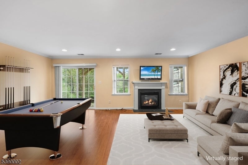 This stunning 3-bedroom, 2.5-bath townhouse in the sought-after Summit Falls community of Pompton Lakes offers comfort, style, and convenience. Perfectly situated in one of the community's most desirable and level locations, it features breathtaking mountain views and a serene setting. Built in 2003 with quality materials and meticulously maintained, it feels like new construction. Inside, enjoy high ceilings, gleaming hardwood floors, fresh paint, and two fireplaces that create a warm, inviting atmosphere. The eat-in kitchen offers ample counter space, newer stainless steel appliances, and opens to a private deck for outdoor relaxation. The primary suite features a vaulted ceiling, oversized closet, and spacious bath with double sinks, soaking tub, and separate shower. Upstairs laundry and generously sized rooms add everyday convenience. The fully finished walkout basement includes a storage room with built-ins and leads to a private yard. With a one-car garage, deeded outdoor parking, and guest spaces, plus a community pool and easy access to Routes 23, 208, 287, and I-80, this move-in-ready home truly has it all.