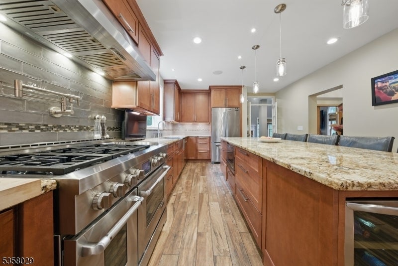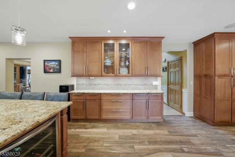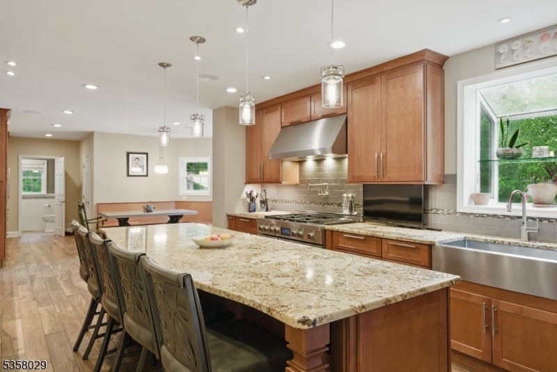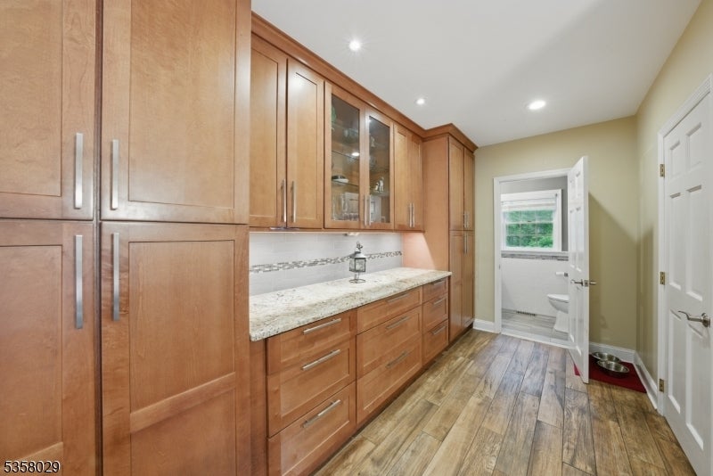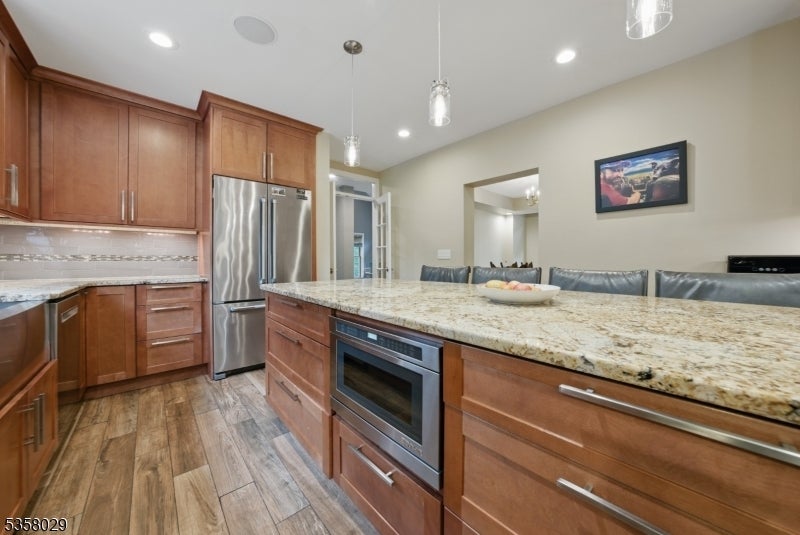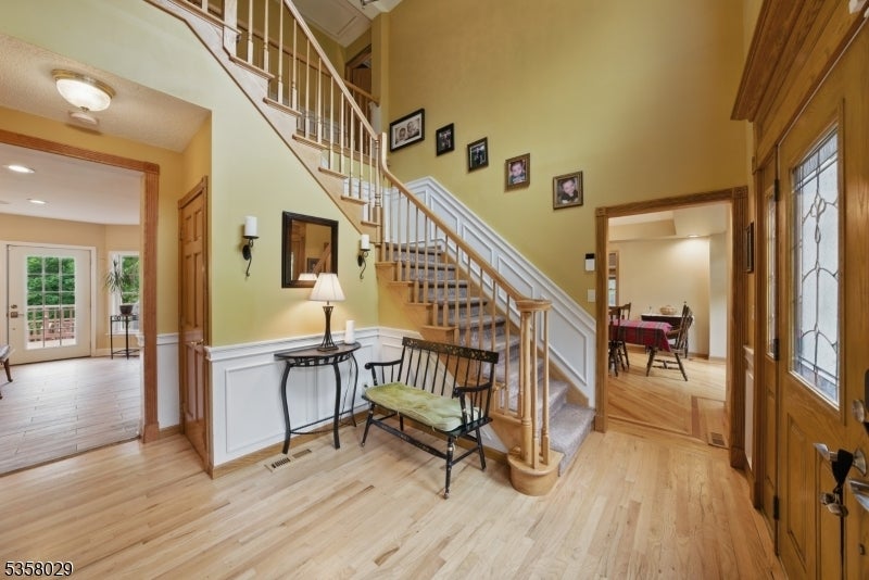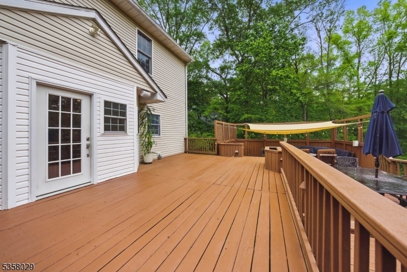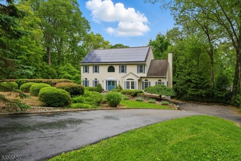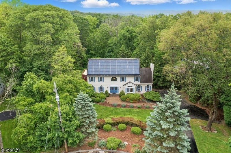 Situated on a beautifully landscaped cul-de-sac in Boonton Township, this captivating 4-bedroom, 3.5-bath colonial offers both timeless charm and impeccable modern upgrades. The home features a stunning chef's kitchen with granite countertops, a large island with seating, stainless steel appliances, and dual ovens, perfect for entertaining. Ceramic wood finish flooring flows into a spacious dining room, while the expansive living room boasts vaulted ceilings, a wood-burning fireplace, and abundant natural light. The luxurious primary suite includes a spa like bath and generous dedicated closet space. Outside, enjoy the serenity of lush greenery, manicured landscaping, and energy-efficient solar panels. Entertain on this massive deck which affords complete privacy. This home has efficient geothermal heating with 2 zones. Located in a desirable neighborhood with top-rated schools and a peaceful setting just minutes from major routes, this home delivers elegance, efficiency, and comfort in equal measure. So close, but feels so far from everyhing!