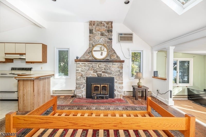 Welcome to a prime opportunity on the big lake in Highland Lakes. This charming home thrives on location, views, and potential. With some TLC, you can transform this property into your lakefront dream. This waterfront residence offers stunning views of the big lake from multiple rooms and a generous, open-concept layout designed for easy living and entertaining. The living room features cathedral ceilings and skylights that floods the space with natural light, creating an airy and inviting atmosphere. The open flow into the kitchen makes for seamless social gatherings, and the sunroom provides a panoramic vantage point of the lake, perfectly complemented by access to a spacious deck for outdoor dining and relaxation. The main level presents mostly hardwood floors, ready for refinishing to your preferred style, while the lower level adds versatility with a storage room and utility room, plus a walkout to the outdoors. Enjoy incredible lake views from the living area and sunroom, a deck that extends your living space outdoors, and the tranquil setting of the neighborhood. The home combines potential with a remarkable location, offering the chance to customize finishes and design to your taste while preserving lakefront charm. This property sits in a desirable lake community, offering easy access to local amenities, outdoor recreation, and the natural beauty of the area?perfect for nature lovers, boaters, and anyone seeking a peaceful retreat with lake proximity.