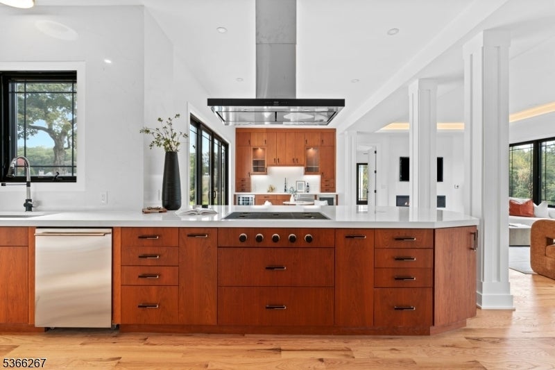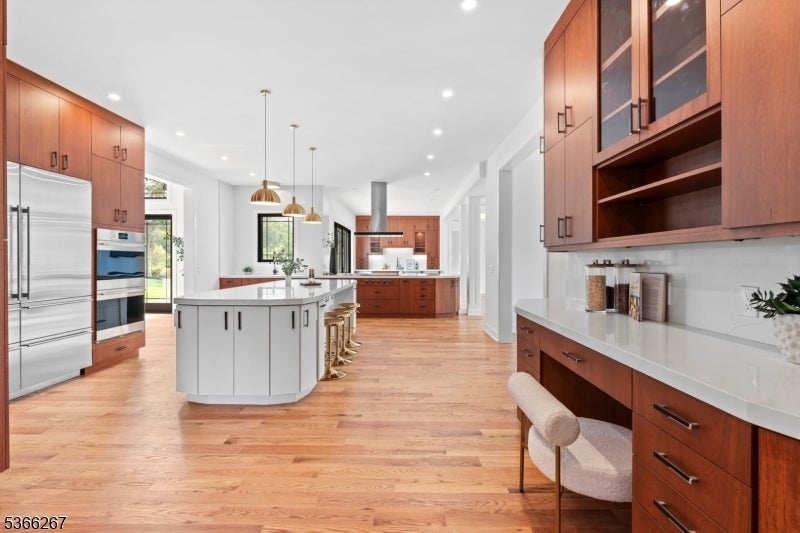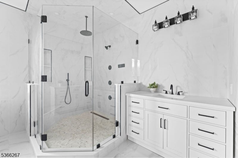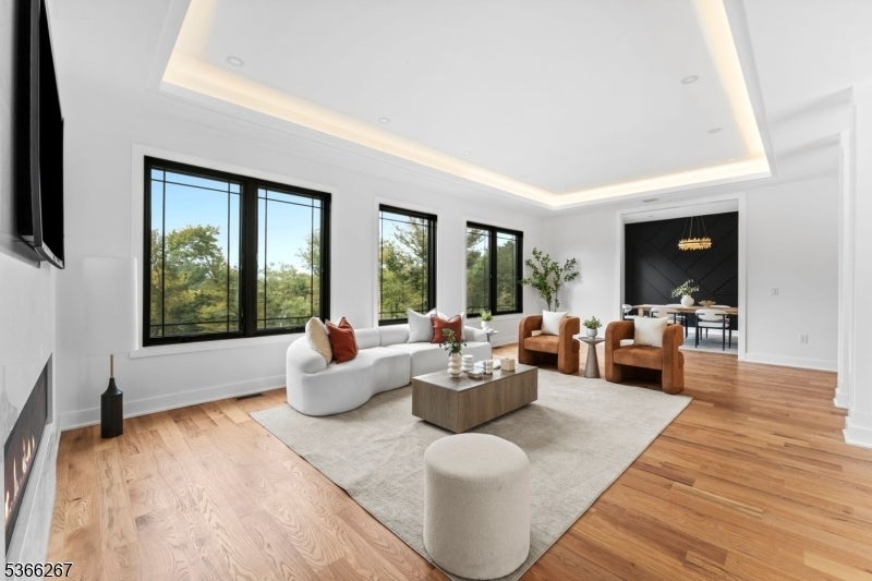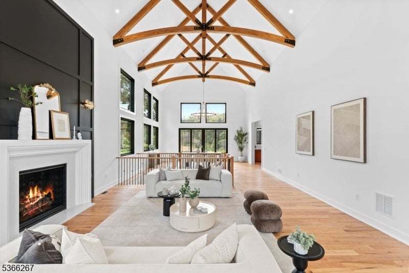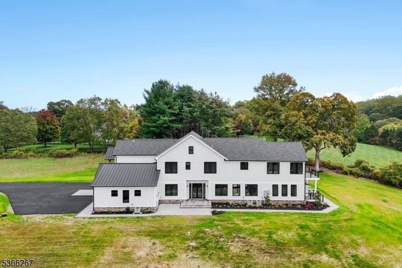 Welcome to Cherry Lane, Mendham's most prestigious address, where this brand-new custom estate crowns 5.94 private acres with breathtaking, unobstructed views. Blending Colorado's rustic grandeur with NYC's sleek modern style, this dream home offers roughly 7,500 square feet of finished living space with 6 bedrooms and 5.1 bathrooms. Soaring ceilings, expansive windows, and an airy, open flow create the ultimate setting for both everyday living and grand entertaining. The dramatic great room stuns with 24-foot beamed ceilings and a striking fireplace, while the main level impresses with 12-foot ceilings, custom millwork, and seamless transitions throughout. A chef's kitchen showcases real-wood cabinetry with soft-close details, quartz countertops, Wolf appliances, and two oversized islands anchoring the dining and living areas. Hardwood oak floors span the first and second levels, accented by mosaic tile in the foyer and lower level. The primary suite is a private sanctuary with dual walk-in closets, dual vanities, a spa-like jet shower, and a soaking tub framed by natural light. Additional highlights include a private in-law suite with built-ins, radiant heated floors, a finished lower level with 10-foot ceilings and glass enclosed wine room. With three-zone HVAC and finishes curated from luxury suppliers, this one-of-a-kind true statement masterpiece delivers bold design, panoramic views, and the ultimate modern lifestyle in Mendham's most prestigious setting.