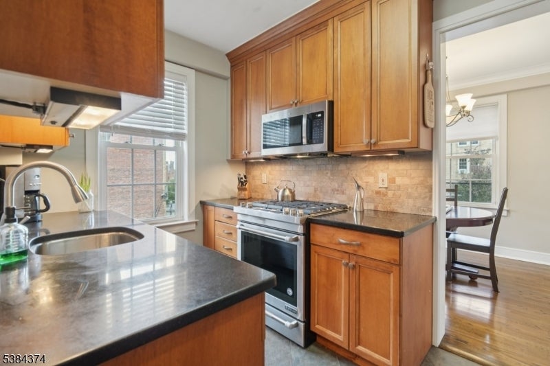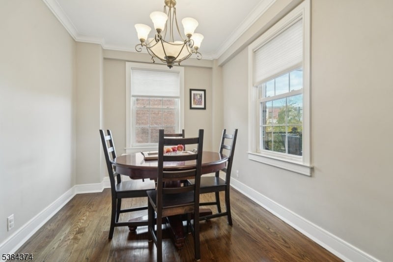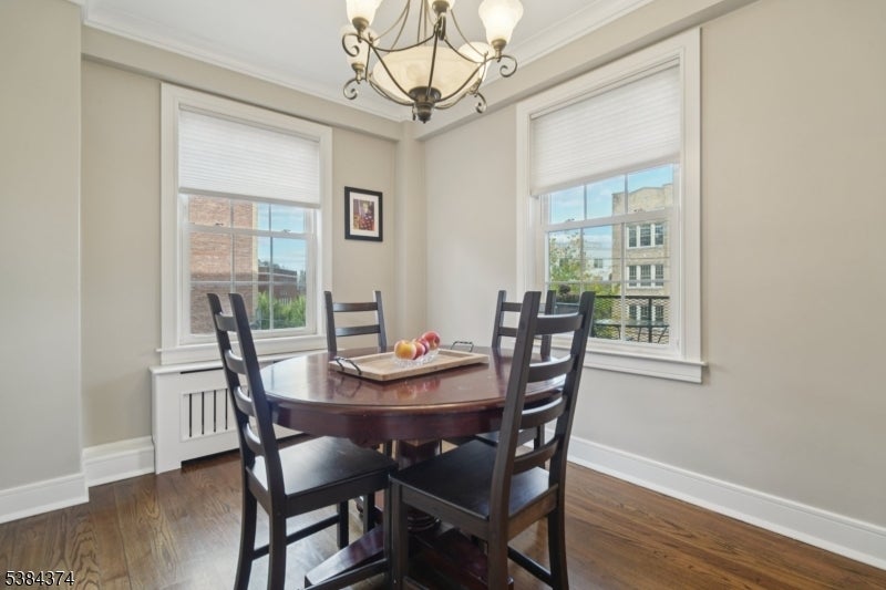Welcome to 5 Roosevelt, located in the heart of vibrant downtown Montclair!This beautifully updated 2-bedroom, 2-bath condo combines modern elegance with urban convenience. Enjoy a bright and spacious living room, a sleek kitchen with all stainless steel appliances, and a formal dining area perfect for entertaining. Both large bedrooms feature custom closets, while the bathrooms have been tastefully renovated.Additional highlights include new hardwood floors, crown molding, updated doors throughout, and two deeded indoor parking spaces. Step onto your private balcony overlooking lively Wellmont Plaza, or head to the rooftop deck to take in breathtaking views of the New York City skyline.The building offers a stylish tiled lobby with an evening doorman, laundry facilities just steps away, and unbeatable proximity to Montclair's best restaurants, shops, and entertainment.This move-in-ready home is a rare find. Experience the best of downtown Montclair living at 5 Roosevelt!