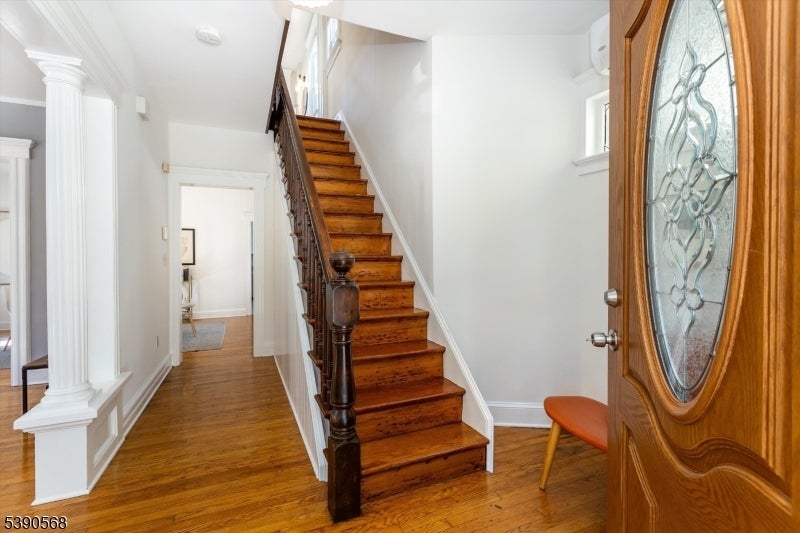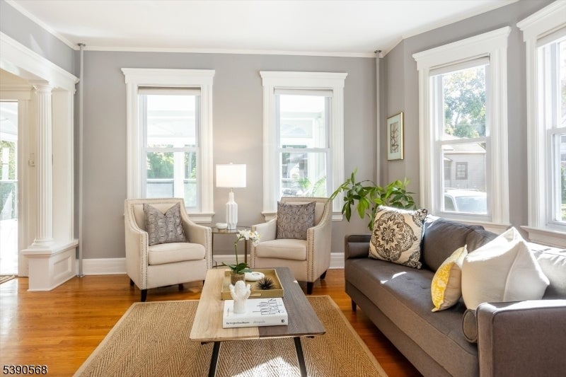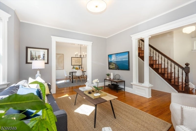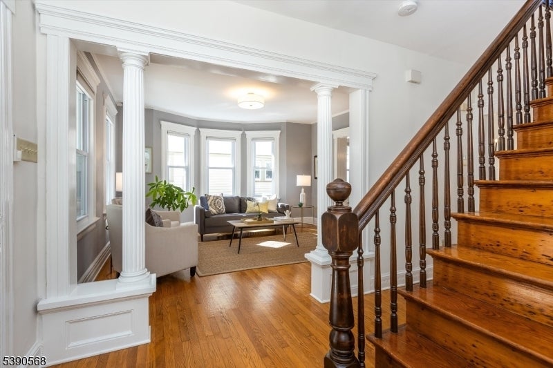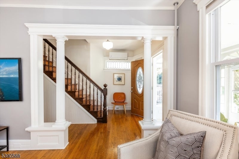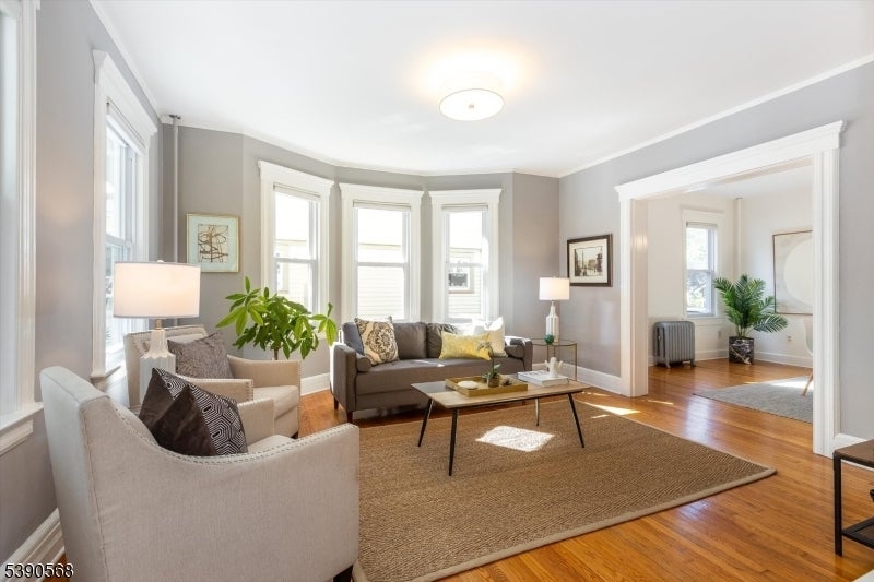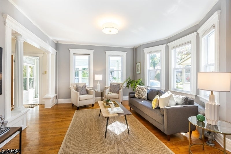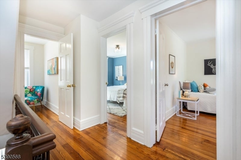 Prepare to fall in love! Step into the timeless charm and modern comfort of this beautifully maintained and freshly painted 3-bedroom, 2.5-bath Victorian in the Historic District. The sunny enclosed front porch adds three-season living space while it opens to a welcoming foyer with original stained glass and high ceilings, setting a warm, inviting tone.The main level features spacious living and dining rooms, a bright kitchen with granite countertops, stainless steel appliances, ample cabinetry, pantry, and an interior mudroom just off the kitchen. Hardwood floors and natural light highlight the home's period details throughout.Upstairs, the second floor offers two generous bedrooms and a sitting room/home office overlooking tree-lined views perfect for enjoying the seasons. The third floor hosts an additional large bedroom, ideal for guests or a private retreat. Bathrooms are located on the first, second, and basement levels. The home includes three ductless CAC units and a finished basement with extra living space/rec. area, full bath, and access to the beautiful private yard.Outside, enjoy a deep lot with private patio, lush garden, two-car garage, and parking for four additional cars. Conveniently located mile from 2 NYC-direct trains (Glen Ridge & Bloomfield) and near top-rated schools, parks, restaurants, cafes, and the town pool. This home perfectly blends historic charm with modern livability.