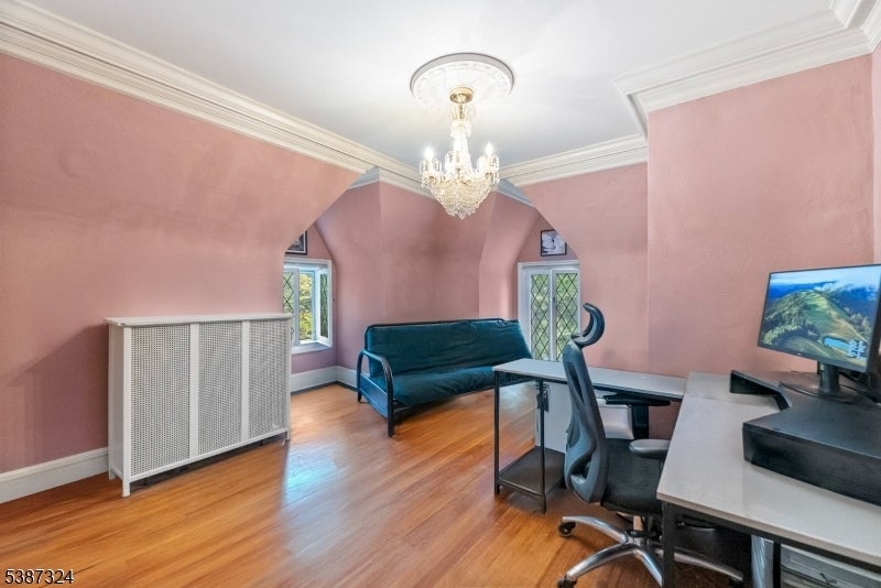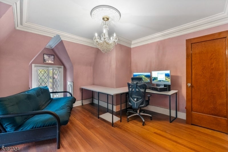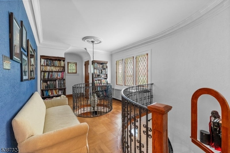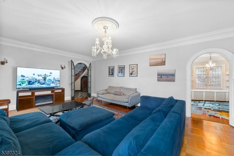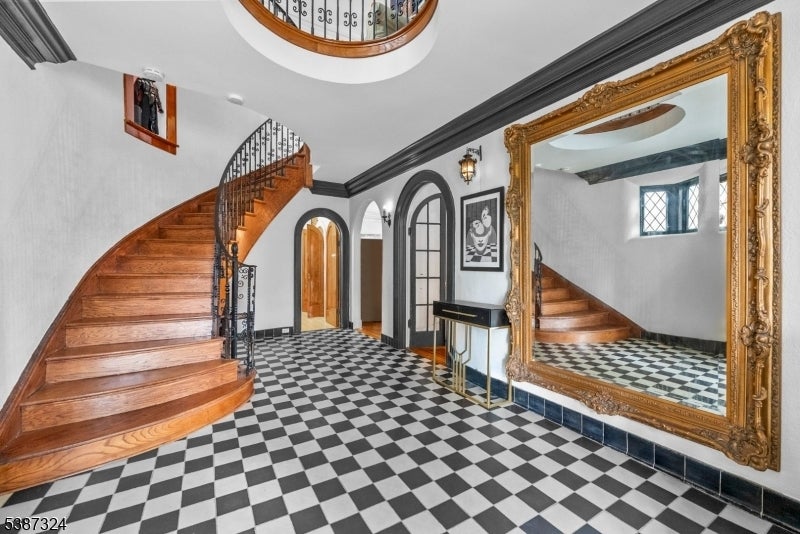 Rich in history and architectural character, this 1923 Montclair residence was designed with scale, craftsmanship, and detail rarely found today. The stately brick exterior and likely slate roof open to a grand foyer with a sweeping wood staircase, dramatic chandelier, solid arched wood doors, and original crown moldings. Distinctive period touches include black-and-white tile, vintage light fixtures, ornamental stonework, ironwork accents, and unique details such as a niche on the stair landing and a hidden under-stairs door.Offering approx. 3,500 sq ft across three finished levels plus a partially finished basement, the layout includes 5 bedrooms, 2 full baths, and 2 half baths. Highlights include a bath with body sprays and a separate clawfoot tub. Modern upgrades balance the historic fabric, including a brand-new gas boiler (2023) with a separate hot-water system.The property's grounds feature decorative stone and statuary elements, complementing the home's original design. Located in commuter-friendly Montclair, this residence provides easy access to transit, shopping, and local amenities.This property combines provenance, architectural integrity, and long-term potential an opportunity to own a true piece of Montclair history while enjoying a lifestyle of lasting appeal. Photos have been edited for MLS purposes.