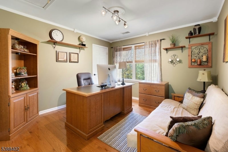 Elegant and truly turn-key, this beautifully appointed home welcomes you with sunlit spaces, gleaming hardwood floors, and timeless custom moldings. The open floor plan creates an easy flow for everyday living and entertaining. The serene master suite features a cozy sitting area, updated bath, and generous walk-in closet. Step onto the large deck to take in seasonal views and breathtaking sunsets. Ideally located close to all major commuter roads style, comfort, and convenience await. WELCOME HOME