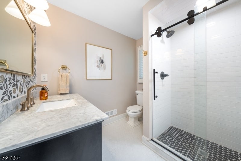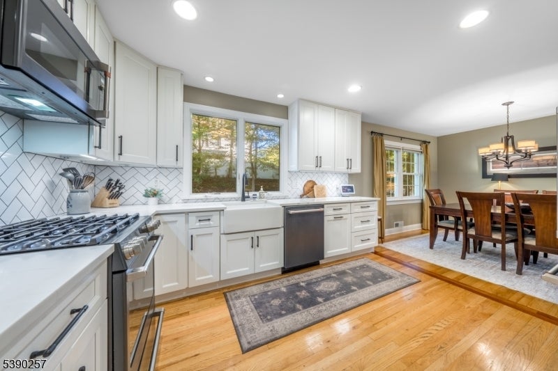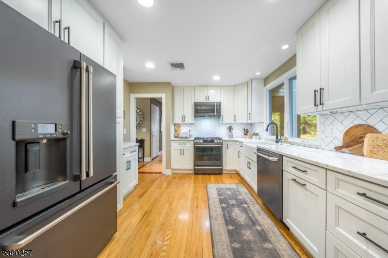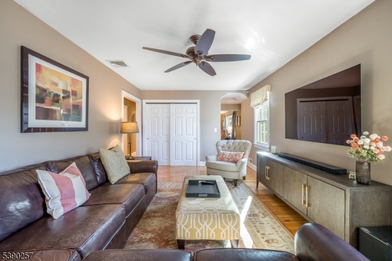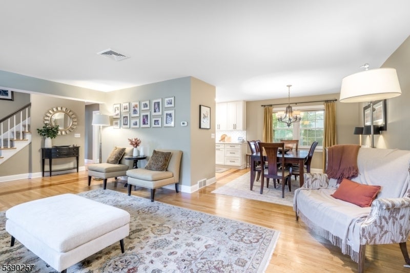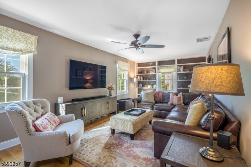 Come home to this exceptional, in-town 4 bedroom, 3 bathroom colonial! With an extremely versatile floor plan this updated Morristown gem with full finished basement, 2-car garage and private yard, checks all the boxes. From the foyer, you are welcomed into a generous living room with wood-burning fireplace and huge bay window that provides tons of natural light. The dining room is open to the kitchen, which was fully updated in 2020 with GE cafe appliances, quartz countertops and timeless white subway tile backsplash. The main level also offers a spacious family room with built-in bookcases, a guest bedroom that can function as an office, a full updated bath, laundry area and charming 3-season room. The main level hardwood floors continue upstairs to the large primary with ensuite, two nicely-sized bedrooms and another full bath. The fully finished lower level provides a huge recreation space for media, gym, playroom and offers a mudroom space from the two-car garage. Outside the newer paver patio offers a wonderful private retreat directly from the three-season room. The home offers excellent curb appeal as the walkways, siding and windows were all recently replaced and is nicely accented by the professional landscaping. A commuters dream and less than a mile to all the downtown shops, restaurants, entertainment and the Morristown train station, this house offers in-town living at its absolute best.