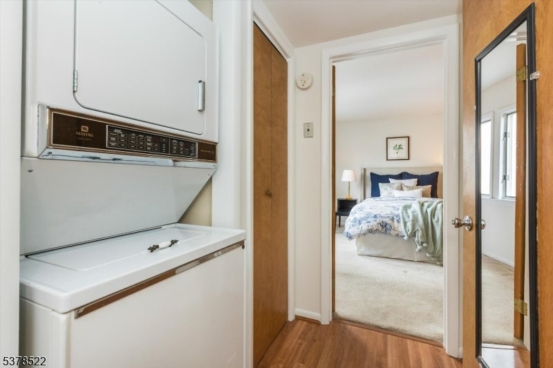 Don't miss the chance to own this bright and spacious one-bedroom condo located in a charming, boutique building with just seven units. Situated on the second floor with convenient elevator access, this home offers an open-concept living and dining area perfect for entertaining. The generously sized bedroom features a private ensuite bath, while additional highlights include in-unit laundry, central air conditioning, and an intercom system for added convenience and security. Enjoy the ease of an assigned parking space in the building's private lot. There is also guest parking and a locked storage room in the basement with dedicated storage for this unit. Best of all, you're right in the center of town just steps from Nutley's beloved parks, vibrant dining scene, and unique local shops. Quick access to everyday essentials like Target and Costco, as well as multiple NYC transportation options makes this an ideal location for commuters and locals alike.