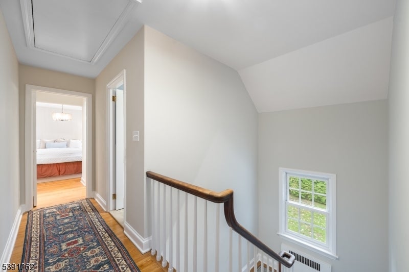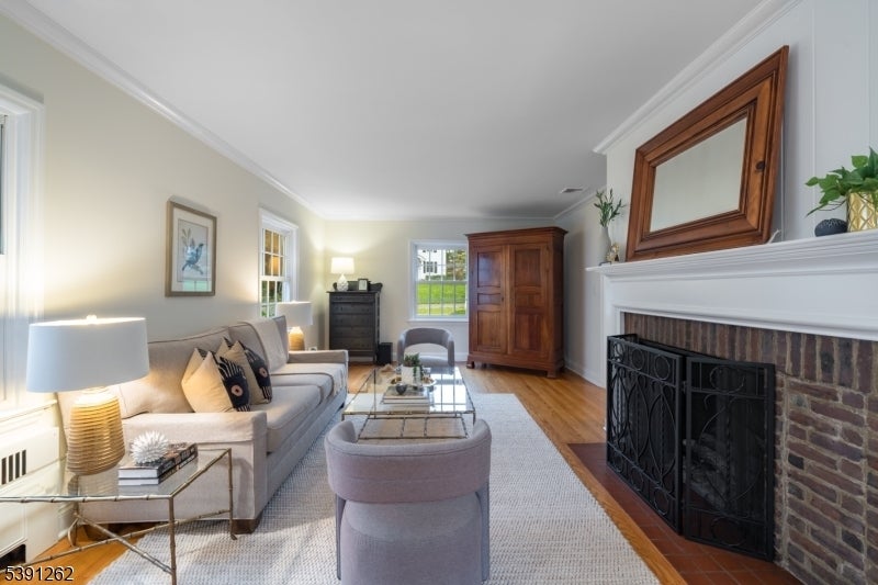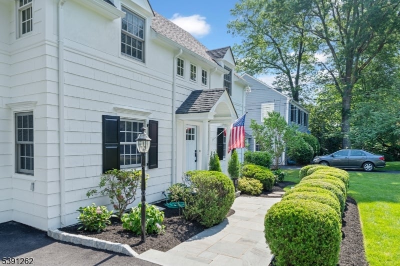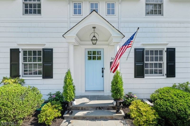 CLASSIC STUNNER IN COVETED CHATHAM NEIGHBORHOOD! Tucked in the Lafayette section, this 1930s Colonial impresses w/ elegant, period details (original hardwood floors, delightful built-ins, rattan light fixtures) updated for modern living. Stately curb appeal w/ classic architecture, meticulous landscaping, and bluestone walkway to Front Portico leading into gracious Entry Foyer. Living Room boasts gas fireplace with brick surround, original woodwork/bookcases, glass door to Covered Deck, and 4 sun-filled windows. Dining Room scaled for large gatherings. Chef's Kitchen updated with Peninsula seating, s/s appliances (inc. Viking stove/hood), and lovely shuttered window overlooking Patio. Graceful staircase w/ window on landing beckons up to 4 generous Bedrooms, all with hardwood floors. Full Hall Bath updated w/ glass-door tub/shower, storage cabinet, marble counters, shuttered window. Primary Bedroom w/ built-in dressers, window seat, large Closet, rattan pendant light. En-Suite Bathroom w/glass-door shower, storage cabinet, marble counters, wainscoting. Brand new (2025) Lower Level renovation includes Laundry Room and lots of bright space to use as Home Office, Exercise Studio, Play Room, etc. Freshly Painted Inside and Out! Level, tree-lined Backyard w/ room for garden and games, Covered Deck w/ ceiling fan, and more! Blocks to NYC train, top-notch schools, and bustling downtown Chatham, 30 Edgewood is poised to please!