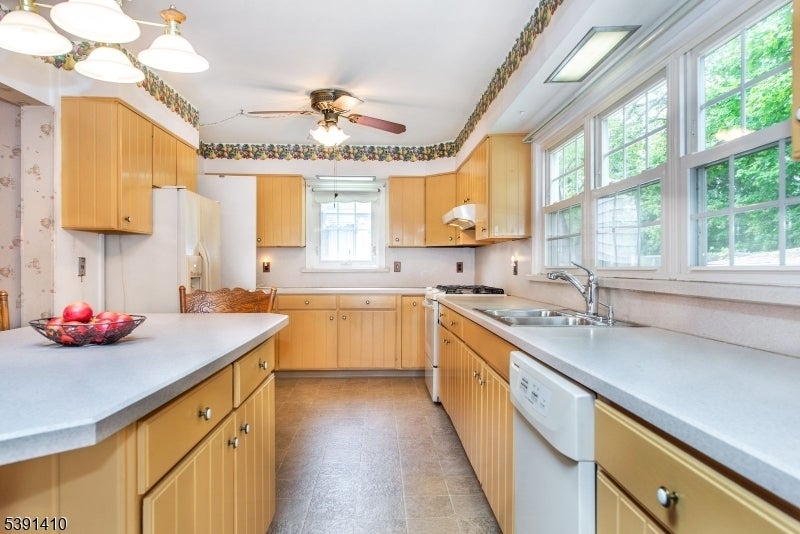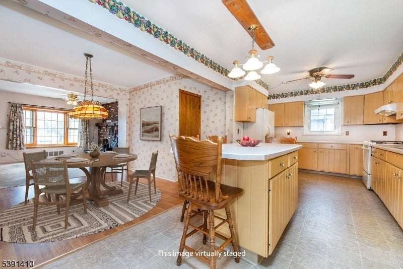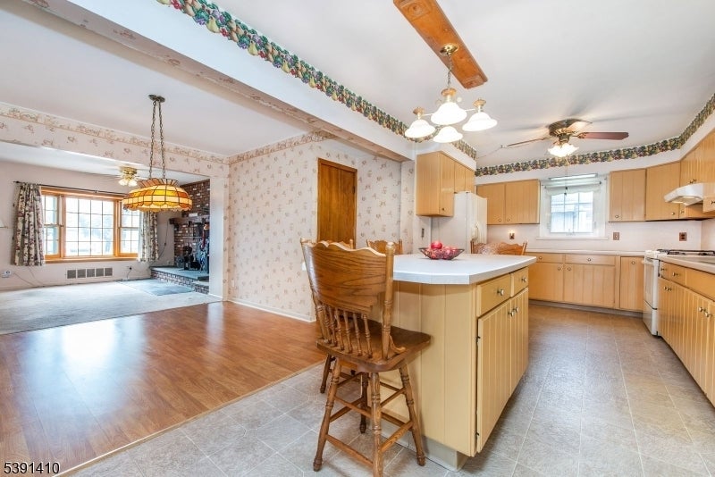 Welcome to this SPACIOUS, EXPANDED front and back dormered cape... Approx 1939sq.ft of space will satisfy all your needs...Many Upgrades over the years with features that include a LR with Wood Burning FRPL and DR that opens into a HUGE, bright and airy 23'x10' MEIK expansion with center island, tons of cabinets, counter space, SKYLIGHT plus PATIO doors to COVERED deck overlooking the PRIVATE yard...the 2nd level open space offers terrific POTENTIAL for CONVERSION to a 4th BR or REC room with office...currently features a huge closet 11'x3'...Highlights include a large unfinished walk-in attic, updated windows, baths, roof...Garage converted to convenient laundry room and added storage...this sought after location only blocks to NYC bus as well as Rt.3, 46, GSP , retail stores and restaurants. HOME WARRANTY included for peace of mind. Don't miss this opportunity!