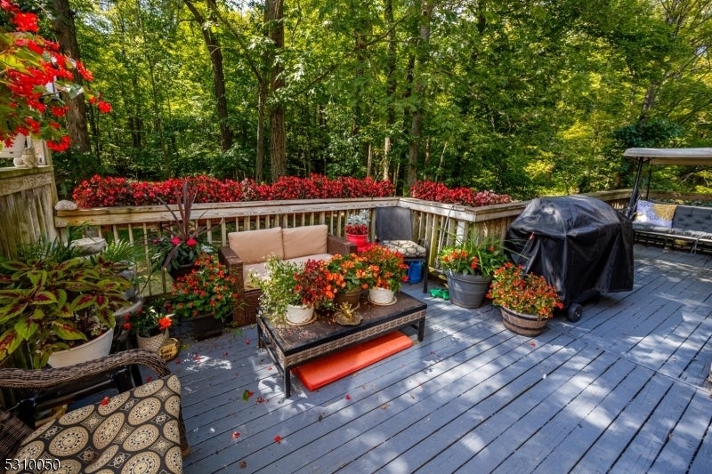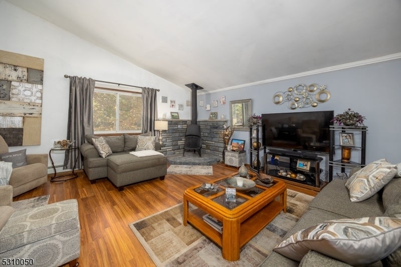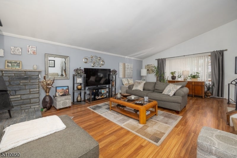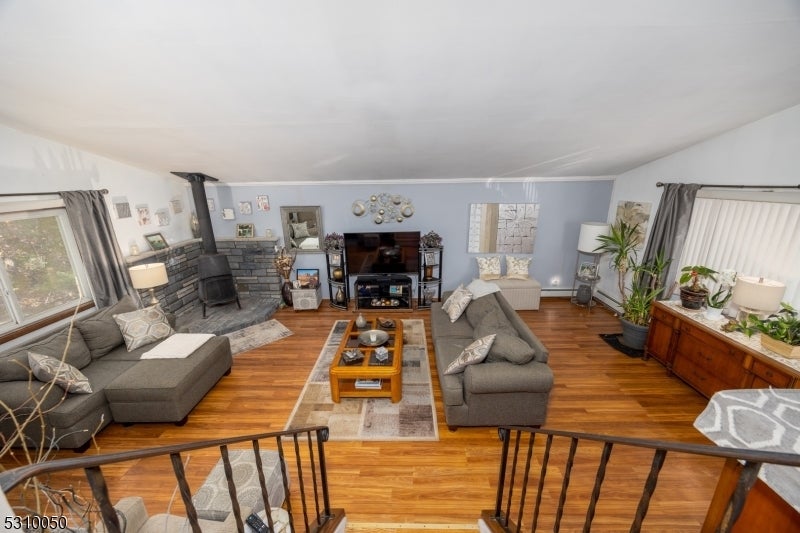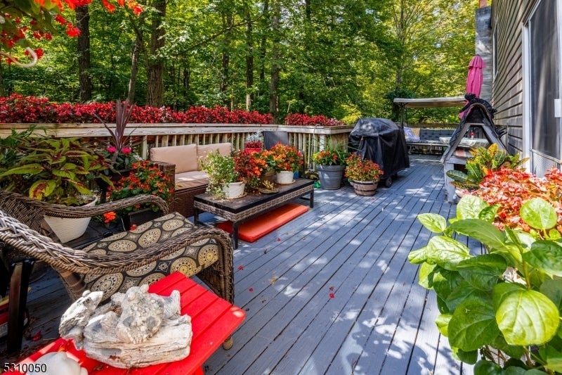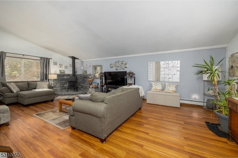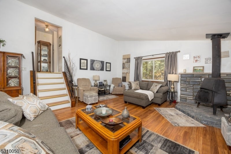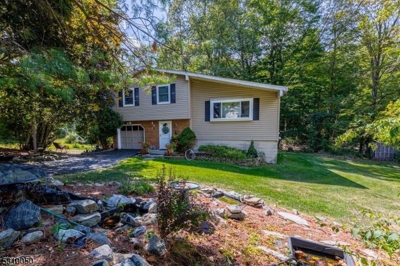 Tucked away in the sought-after Sunset Ridge section of Barry Lakes, this beautifully maintained split-level home blends comfort, charm, and privacy all with no lake dues! Offering 3 spacious bedrooms and 1.5 baths, this home welcomes you with an inviting foyer that leads into a bright, open, and functional layout. The first floor features a large eat-in kitchen, a cozy den that can also serve as an office or 4th bedroom, a convenient half bath, and access to the garage currently set up for extra storage but easily convertible back to a full garage. Just a few steps down, you'll find a basement bursting with potential, ready to be finished into additional living space, with a laundry room already in place. The main living area boasts soaring cathedral ceilings, an airy open-concept design, and a charming wood stove that adds warmth and character to the space. Upstairs, three generous bedrooms and a beautifully renovated main bath complete the home. Step out onto the deck and take in the serene wooded backdrop, where state land behind the property ensures privacy and peaceful views year-round. This home is in an unbeatable location close to hiking and biking trails, nearby state parks open to the public for swimming and recreation, as well as skiing, golf, and the historic town of Warwick, NY, known for its charming shops, wineries, breweries, and so much more!