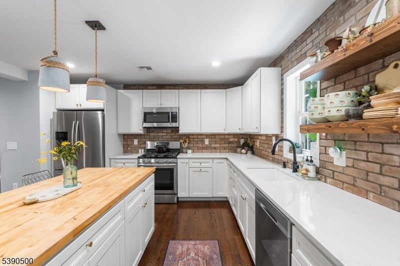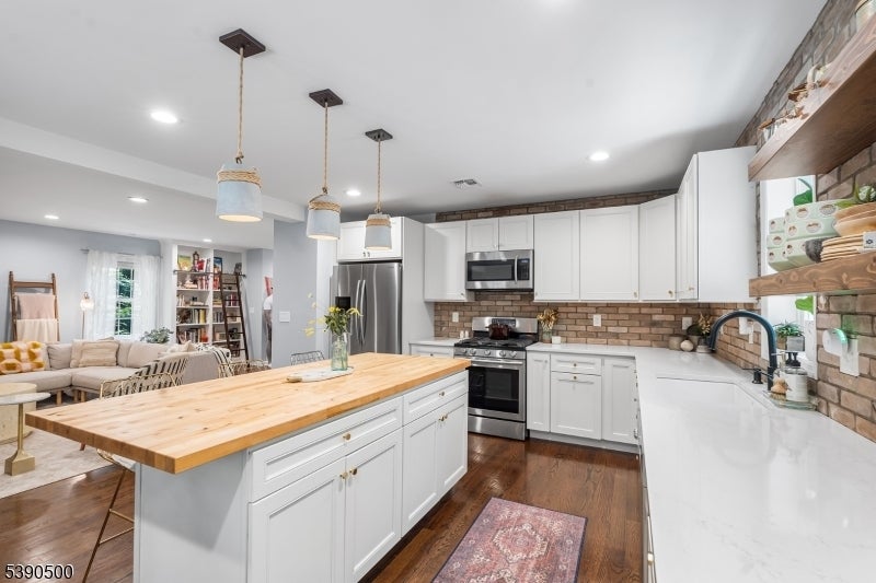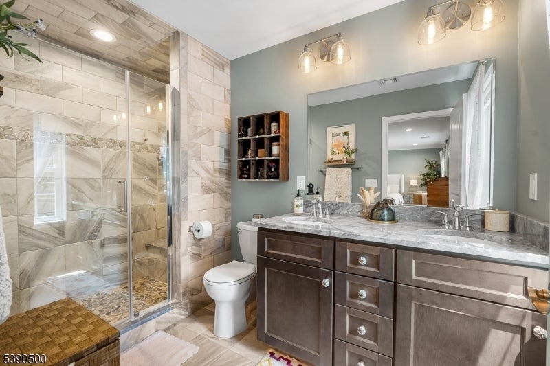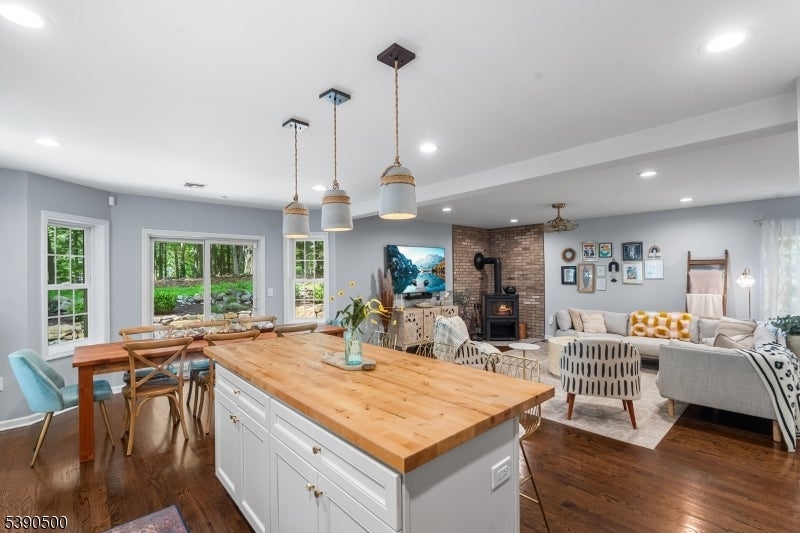 Built in 2020, this 4-bedroom, 3.5-bath Colonial blends modern comfort with timeless charm in one of Morris County's most desirable neighborhoods. The inviting front porch welcomes you into an open-concept main level featuring hardwood floors throughout, abundant natural light, and a cozy wood-burning fireplace. The updated kitchen showcases sleek finishes, ample cabinetry, and direct access to the paver patio perfect for summer entertaining and indoor/outdoor living. Professional landscaping with fresh sod enhances curb appeal and creates a polished backyard retreat. Upstairs, the primary suite features a walk-in closet and full bath with dual vanity and glass stall shower. Two additional bedrooms and a hall bath complete the second level. The finished top floor adds even more living space, offering an additional bedroom, full bath, and a flexible lounge area currently used as a pottery studio, but easily adaptable as a guest suite, office, or creative space. Additional highlights include central air, natural gas heat, accessible laundry, and an attached garage. The property is located on a freshly paved private road, combining privacy with convenience. Situated in the Valleyview and Morris Knolls school district, with close proximity to Cedar Lake, shopping, dining, parks, major highways, and NYC train service, this home offers the perfect blend of style, space, and commuter-friendly living. This home is move-in ready, come see for yourself!