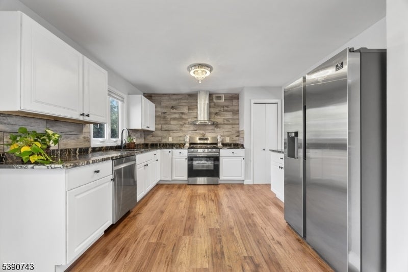 WELCOME HOME! NESTLED ON A DEAD-END STREET, THIS UPDATED HOME OFFERS A PEACEFUL AND PRIVATE SETTING. Main Level Features a Sun Filled Living Room/Dining Room With Vaulted Ceilings, Well Appointed White Kitchen with Beautiful Orinoco Granite Counters and Access to your Private Deck, Powder Room and Laundry Closet for Convenience. Upper Level includes a Spacious Primary Suite with a Private Bath and a Generous Walk in Closet, Bedroom #2 and another Full Bath. Walkout Lower Level boasts Bedroom #3 (CURRENTLY USED AS A FAMILY ROOM WITH THE CLOSET CONVERTED TO THE BAR), Powder Room and access to the Garage. DON'T MISS THE OPPORTUNITY TO MAKE THIS MAGNIFICENT HOME YOUR OWN!
