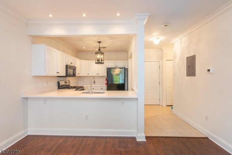 Welcome home to this beautiful 1 bedroom, 1 bath condo with a spacious den perfectly blending modern comfort and natural tranquility. Kitchen boasts sleek quartz countertops, white cabinetry and stainless steel appliances creating a contemporary space. Bright living area flows seamlessly to a private deck overlooking the woods offering peaceful views and a perfect spot to relax with your morning coffee or unwind at sunset. Primary bedroom provides a comfortable retreat with ample closet space while the den offers flexibility for a home office or reading nook. Some new features include freshly painted and new LVP flooring throughout. Enjoy the best of low maintenance living in a desirable location in a gated community close to shopping, dining and commuter routes. Move right in and enjoy a lifestyle of comfort, convenience and style.
