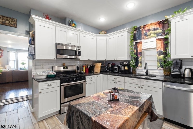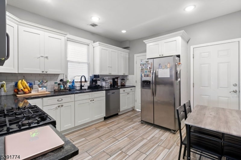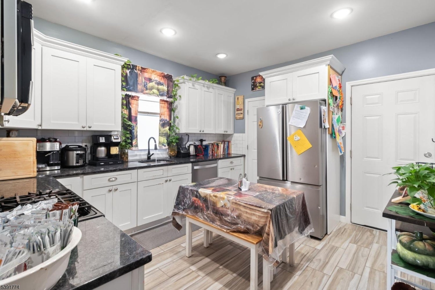 Both units to be delivered vacant. Welcome to this well maintained, updated two family home in one of Bloomfield's most sought after neighborhoodsjust steps from the NYC train and perfect for generating rental income! This spacious property offers two move in ready units, each featuring refinished hardwood floors, high ceilings, large windows, and an open concept living/dining area. The eat in kitchens include stainless steel appliances and granite countertops, while the updated bathrooms and separate laundry rooms add both comfort and functionality. Each unit has its own utilities for maximum privacy and efficiency. The first floor unit enjoys exclusive access to a fully finished basement with a powder room. The second floor unit includes attic storage accessible via pull down stairs. Major updates include a newer roof, furnaces, and HVAC units. Step outside to a private, fully fenced backyard complete with a pavered and covered patio ideal for entertaining, relaxing, or enjoying quiet evenings.