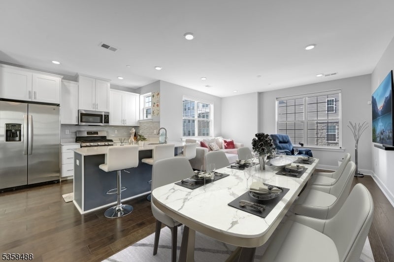 Experience modern living in this stunning 3-bedroom, 2.5-bath end-unit townhome in the sought-after Collection at Morris Plains. Built just two years ago, this home offers high-end finishes, smart home technology, and an unbeatable location. Step inside to an open-concept living space design with a spacious living and dining area, a modern kitchen with a peninsula, and a convenient powder room perfect for entertaining. The chef's kitchen boasts quartz countertops, shaker cabinets, stainless steel appliances, and a pantry for ample storage. Upstairs, all three bedrooms include walk-in closets, while the primary suite offers an en-suite bath with a stand-up shower and blackout shades. Both full bathrooms feature dual sinks, ideal for convenience and comfort. A laundry room with a washer and dryer adds extra functionality. Designed with smart home features, this residence includes whole-home surge protection, electric smart blinds in the living room and primary suite, two-zone heating/cooling, keyless entry, smart thermostat, and a Ring doorbell. Located just minutes from the Morristown Train Station, commuting to NYC and Hoboken is effortless. Enjoy easy access to I-287, I-80, and Route 10, as well as premier shopping, dining, and entertainment in downtown Morristown. Outdoor lovers will appreciate the nearby parks, golf courses, hiking trails, and community events. Don't miss your chance to own this luxury townhome in one of Morris Plains' most desirable communities!