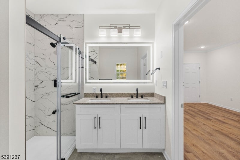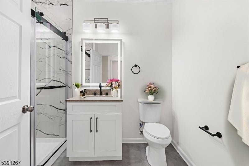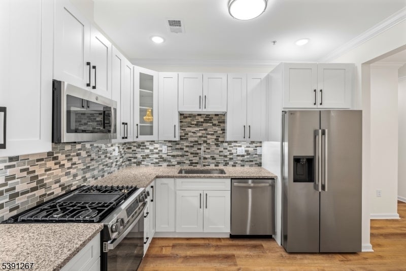 Stunning fully 2025 yr renovated Brand new condo in Birch Glen Community 2 beds, 2 full baths, and a fully finished bsmnt. Completely NEW in 2025, NEW windows, doors, storm doors, dimmable recessed lighting, and luxury wide-plank vinyl flooring throughout the main floor and bsmnt, waterproof, scratch-resistant, and steam-moppable. The kitchen is a chef's dream with 42 cabinetry, granite-countertops, garbage disposal, vent-out exhaust, breakfast bar, under-cabinet lighting, stylish pendant lights, and all-new SS appliances (2025). Dining room boasts a Luxury Crystal Empire-style chandelier- perfect for entertaining. Bright open-concept living spaces with high ceilings, and abundant natural light flow seamlessly. Master Bed includes balcony access, an upcoming custom walk-in closet, and en-suite bath with quartz vanity, tub, stall shower, and LED smart mirror. 2nd Bed with balcony access, ample closet space & excellent natural light. The fully finished basement adds recreation space, a dedicated HVAC duct, and extra storage. Additional upgrades include crown molding, new laundry room with shelving, Rheem 75-Gal waterheater (2025), and Carrier HVAC system (2025). 2025 New Roof, Nest thermostat & ramp entrance. This move-in ready, perfect for buyers seeking modern, and stylish home combined with elegance, function, and turnkey living. Near shopping, schools, highways, and NYC transit.1.5 Years of Builder Warranty is Transferred to the Buyer at the time of Closing.