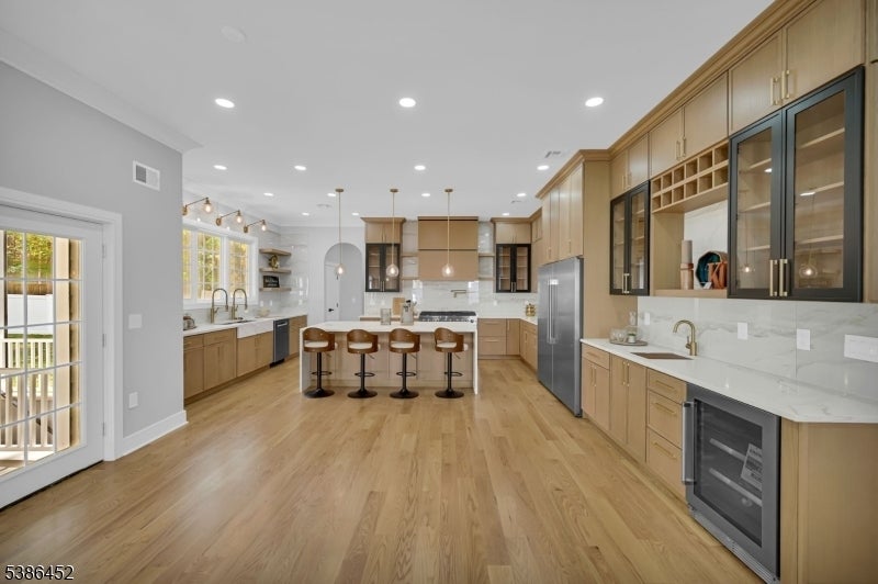 Welcome to the stunning newly constructed home with 6 bedrooms, 5.1 baths, approx 4,500 sq. ft. on a flat Fenced 0.38-acre lot and huge Circular Driveway. From the moment you arrive, the grand 2-story foyer & flowing open floor plan invite you in. Rich hardwood floors, elegant accent walls, & custom trim/millwork infuse each space with timeless character. The formal dining rooms set the stage for refined gatherings, while the heart of the home the gourmet kitchen is equipped with high-end stainless appliances, quartz countertops, a center island, and ceiling-height Shaker cabinetry. The family room, anchored by a fireplace, feat. 3 sets of glass doors, opening to a dramatic covered patio w/ its own outdoor fireplace perfect for seamless indoor-outdoor entertaining. A 1st-floor guest suite w/ full bath, mudroom, & powder room round out the main level. Upstairs, the primary suite is a private retreat with cove ceiling, expansive WIC, & a spa-like bath complete w/ soaking tub, frameless stall shower, dual vanities & private balcony. Four additional bedrooms (one en-suite), hallway bath, & a convenient laundry room complete the second floor. Descend to the fully finished walk-up basement to discover a dedicated recreation space w/ built-in bar and kitchenette, a flex/office room, a full bath, a utility room outfitted with a custom vanity and a storage room. Located in highly sought-after Livingston, close to top schools, downtown, NYC train access. 10-Yr Remodel Warranty