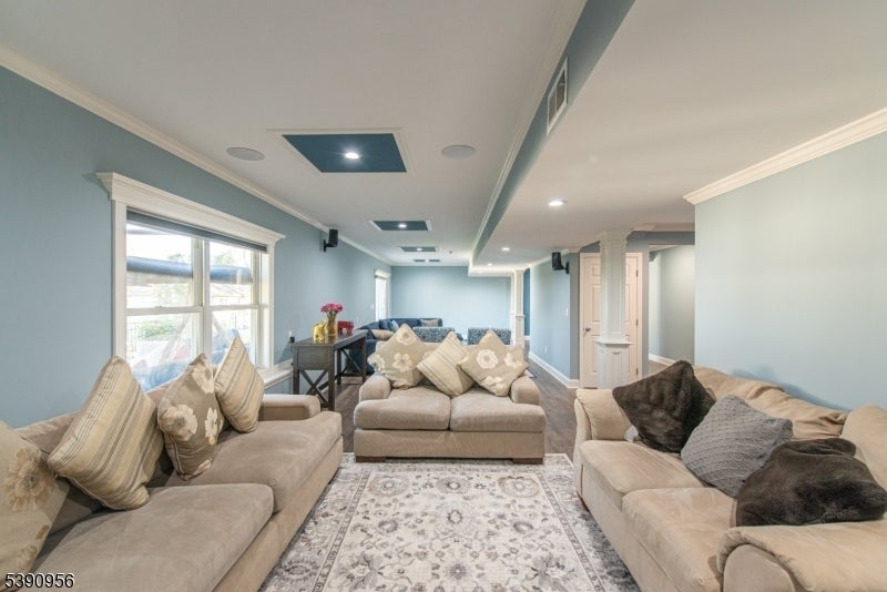Welcome to Lakeview Estates where refined living meets everyday comfort. Nestled on a premier cul-de-sac, this sensational Colonial offers timeless elegance w/an open layout & exquisite details throughout. A charming covered front porch sets the tone, leading to a bright two-story foyer w/ soaring ceilings & fresh, neutral interiors. A first-floor bedroom provides ideal flexibility for guests or multi-generational living. The chef's eat-in kitchen impresses w/ sleek quartz countertops, a dramatic waterfall-edge island w/ breakfast bar seating, & GE Profile appliances including a new dishwasher. The adjoining family room, anchored by a wood-burning fireplace, captures tranquil views of the lush, landscaped property. The primary suite is a serene retreat featuring a private sitting room, walk-in closets, & a spa-inspired bath. Three bedrooms offer generous space. The sensational daylight, walk-out lower level completed in 2022 adds over 900 sq. ft. of exceptional living, including a custom kitchenette, wet bar, & full designer bath, perfect for entertaining or extended stays. Located minutes from major thoroughfares w/direct access to NYC transit, top-rated Mt. Olive schools, shopping, dining, & nearby Turkey Brook Park, where you'll find a plethora of sports courts, miles of walking tracks, a fishing pond, & a dog park. If you want these amenities to add to your lifestyle, don't miss this exceptional opportunity to own a luxurious home w/ all its incredible offerings!