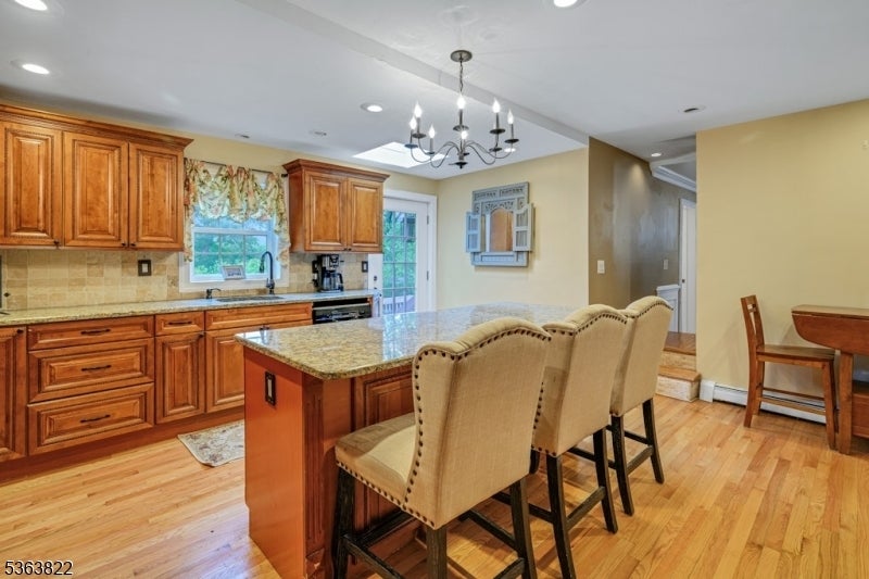 IMPORTANT USE GPS - 4 Cedar Rd TOWACO 07082 ------------ This charming, well located 3/4 BR home offers flexibility and character, with a layout that suits a variety of living arrangements. On the main level, you'll find the living room, lovely gourmet kitchen with gorgeous island, laundry room, a dining room / flex space (currently being used as a bedroom), and a full bath providing options for first-floor living. The second-floor features 3 BRs, a small loft area, and a half bath. Hardwood floors run throughout most of the home, with Pergo flooring in one of the 2nd fl. bedrooms. A cozy wood-burning fireplace adds warmth and charm. The property includes a large, detached structure roughly the size of a one-car garage plus an additional storage shed near the driveway. Other highlights include a whole-house generator, rear deck with gas line for a grill, attic storage, partial roof replacement, hot water baseboard heat and winter mountain views. The home is serviced by public sewer, well water and natural gas. This property is being sold as-is.and offers a great opportunity for buyers looking to personalize in a neighborhood of mostly newer, more expensive homes. Est avail for new 2nd floor bath.