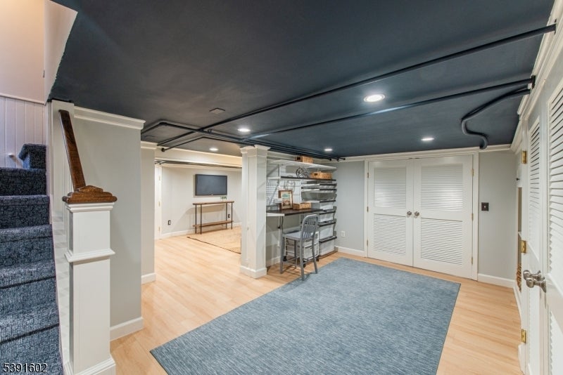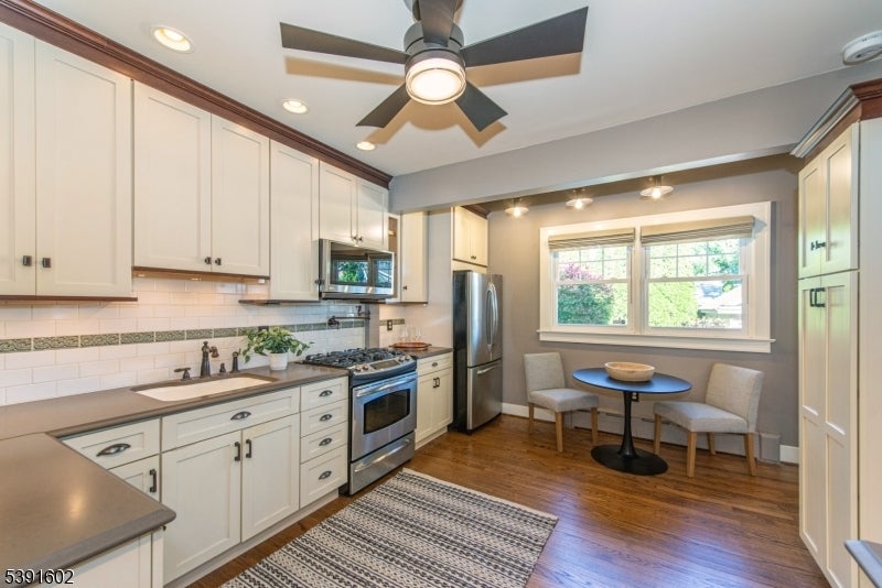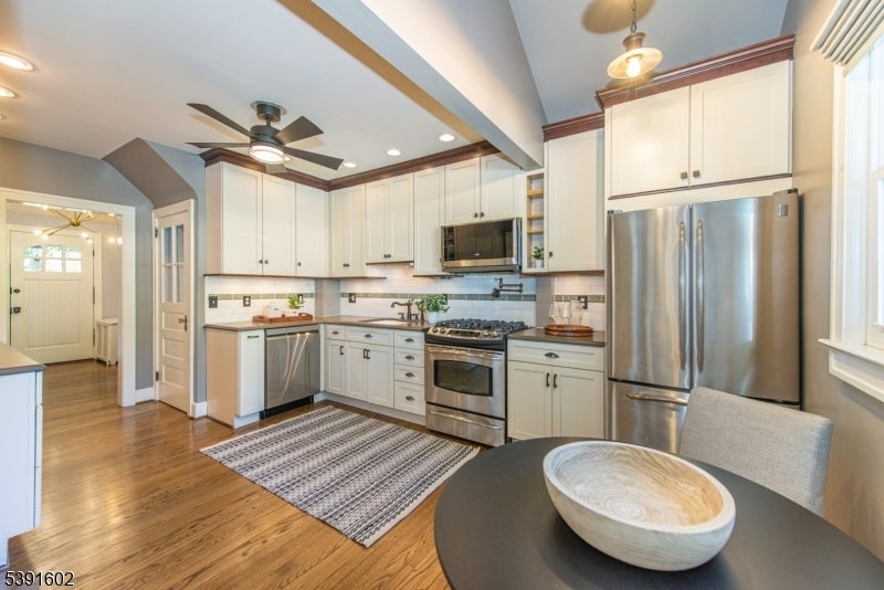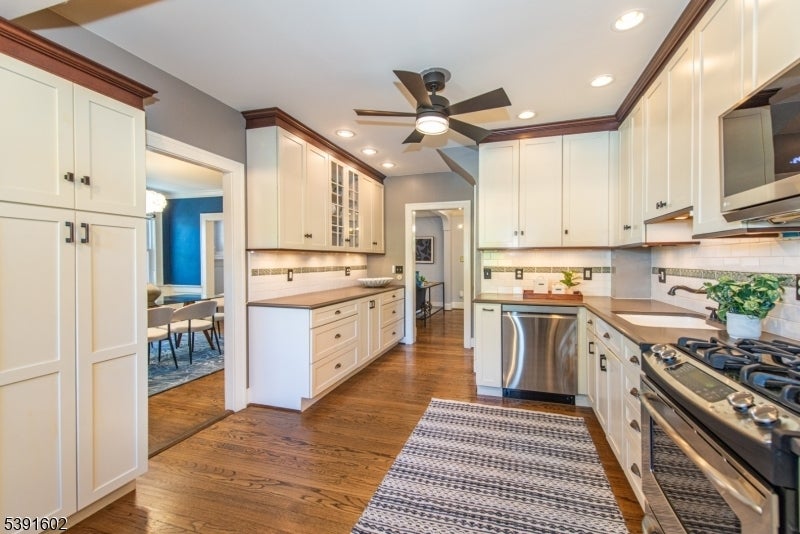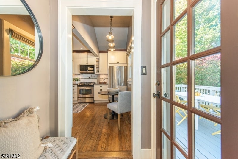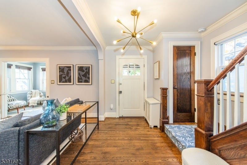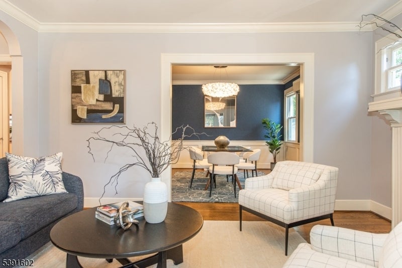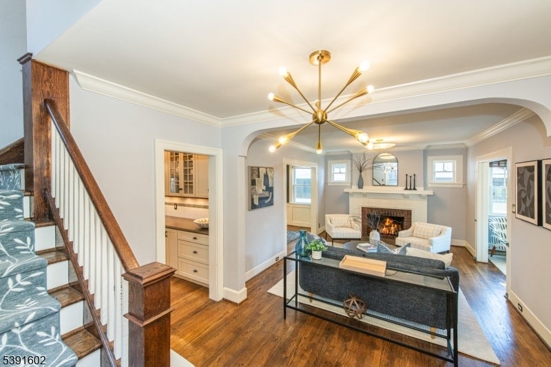 Set on a bucolic, tree-lined block just steps from Brookdale Park, this picture perfect 3-bed, 2.5-bath Tudor blends classic charm with stylish modern updates. A grand mahogany front porch opens to a bright, contemporary living room with stylish lighting,gas fireplace & HW floors. The main level includes a formal dining rm, inviting sunroom, and an eat-in kitchen connecting to the mudroom and outdoor deck perfect for everyday living and entertaining. Half bath is also conveniently located on the 1st level. Upstairs offers two comfortable bedrooms, with ample and multiple closets, in addition to a a cozy office/bonus room and a double sink full bath. On the third floor, a private primary suite serves as a serene retreat. The finished lower level adds flexible living space with a built-in work station & a full leisure room equipped w\ an additional full bath+spacious laundry room. A two-car garage, exclusive driveway and impeccably landscaped grounds are just the icing on the cake. Residents of GR enjoy the Jitney service to & from the NYC direct train station for a breezy commute as well as access to a top-rated school system recognized nationwide. Minutes from Montclair's shop and restaurants and around the corner from the GR Country Club for a golfing outing. Imagine sipping your coffee on your porch on a Sunday morning, enjoying the foliage and your amazing maple tree turning colors, while not renouncing to the urban living perks..this makes this home the complete package!