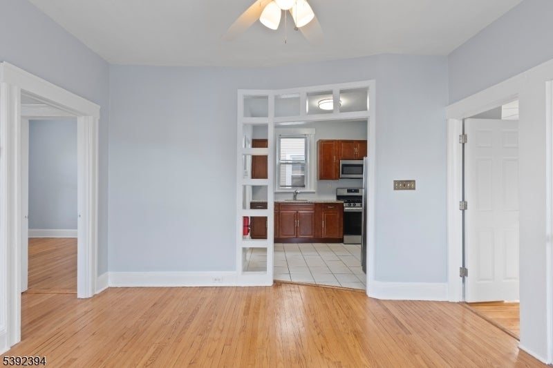 Welcome home to this sun-filled 2-bedroom plus den residence, perfectly situated on the first floor of a well-maintained 2-family home in Clifton. This charming unit offers a seamless blend of warmth and functionality, with beautiful hardwood floors, large windows that flood every room with natural light, and a spacious layout that feels both inviting and versatile. The home features two bedrooms one of which is located within another, making it ideal as a walk-in closet, home office, nursery, or a cozy third bedroom depending on your needs. The bright living and dining areas offer great flow, and the kitchen comes complete with wood cabinetry, a gas range, and stainless steel appliances.Step outside and enjoy your exclusive front porch, a perfect spot to sip morning coffee or unwind at sunset all while admiring the home's great curb appeal and well-kept exterior. Street Parking! Available immediately! Street Parking, No pets. Convenient location close to transportation, shopping, and local dining options. This home offers exceptional value and comfort in one of Clifton's most accessible neighborhoods.