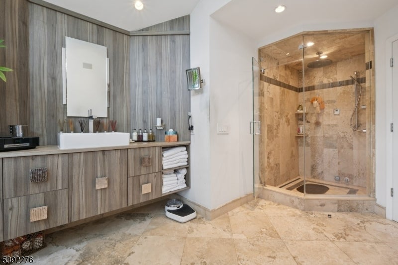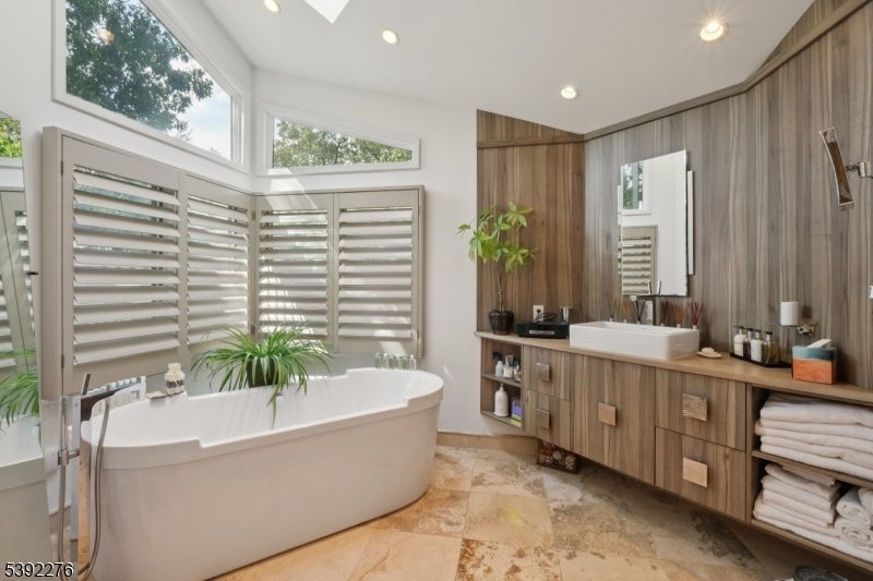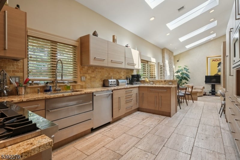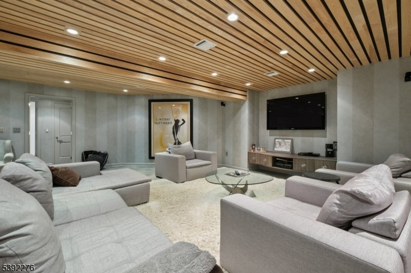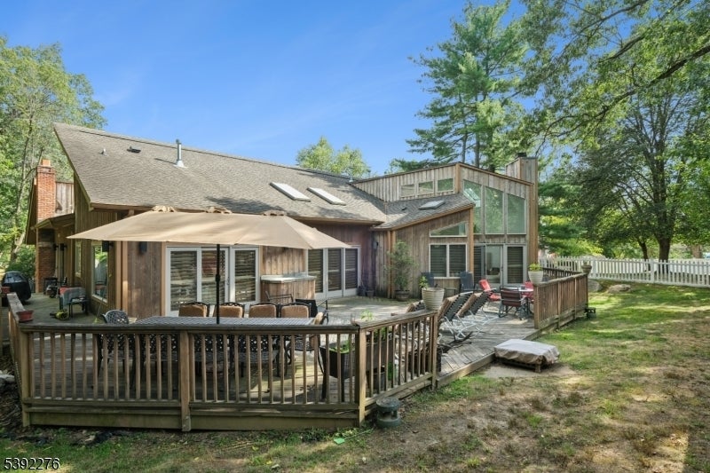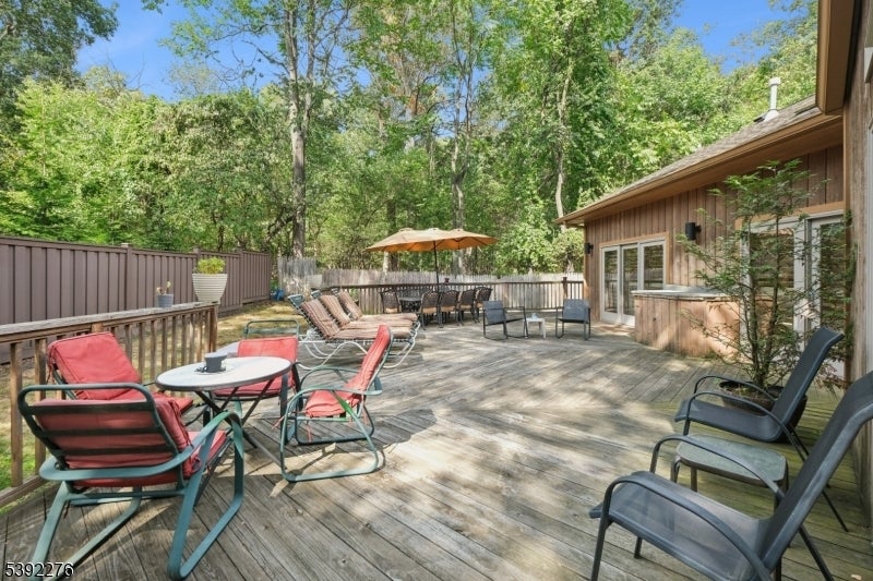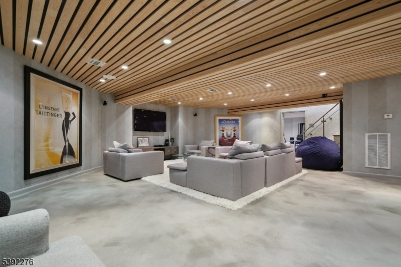 Welcome to this custom contemporary ranch tucked away at the end of a peaceful Livingston cul-de-sac. Designed with an open floor plan and soaring ceilings, the main level features a renovated and spacious eat-in kitchen, 5 bedrooms, and 3.2 beautifully renovated baths, including a serene primary suite. Sun-filled living spaces create a warm and inviting atmosphere throughout. The fully finished lower level extends the home's versatility with 2 additional bedrooms and 1.5 renovated baths. A spacious den with large TV and a stylish bar make this level ideal for entertaining, relaxing, or hosting guests. With its thoughtful layout, modern updates, and prime location, this home offers the perfect blend of elegance, comfort, and everyday living.
