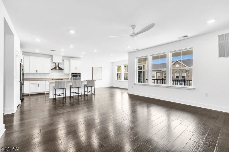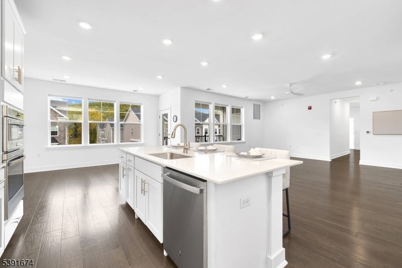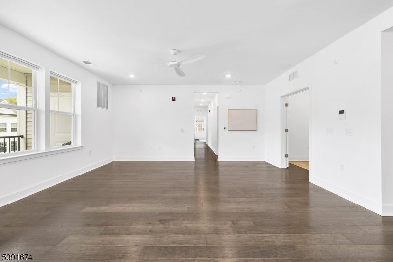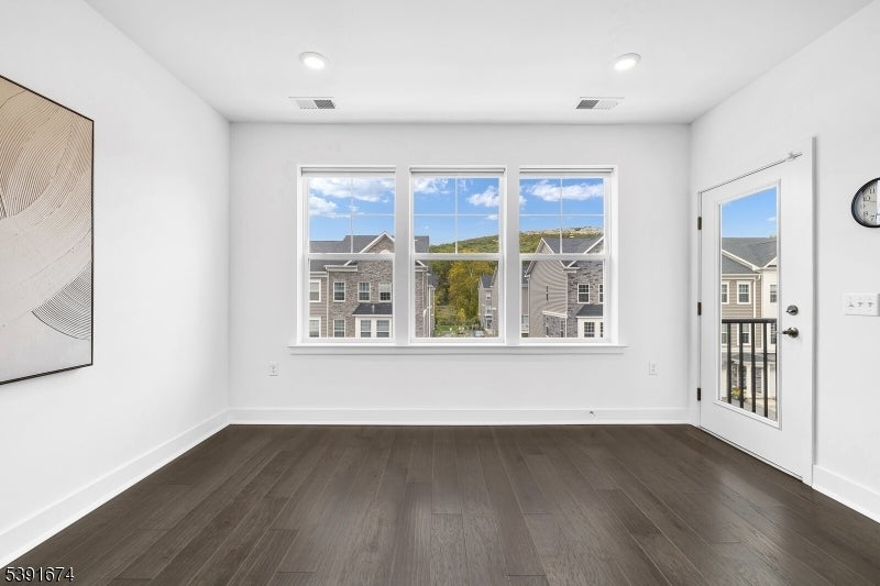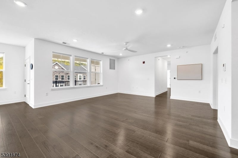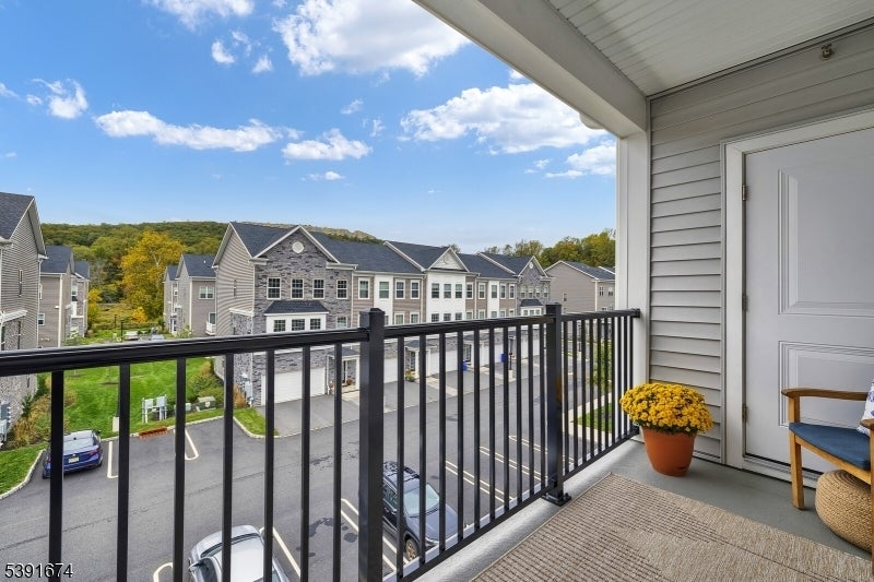 Top-floor, single-level condo with elevator access offering 3 bedrooms, 2 full baths, and an open, light-filled layout. Features include a modern kitchen, dining area, spacious great room, office/den, laundry room, welcoming foyer and a balcony overlooking a peaceful sight of green rolling lawns and towering trees. Attractive Shaw engineered hardwood flooring in foyer, kitchen, dining area, great room, office, hallway and primary suite. Enjoy tranquil wooded views from the private balcony. Walking and bike trails throughout the community. Turn-key and low-maintenance living at its best, with an oversized garage and additional storage space. Conveniently located just 0.75 mile from the Morris Plains Train Station with express service to NYC and recently selected as the location for NJ TRANSIT's 2026 TRANSITional Art Project. The perfect blend of comfort, style, and commuter convenience.