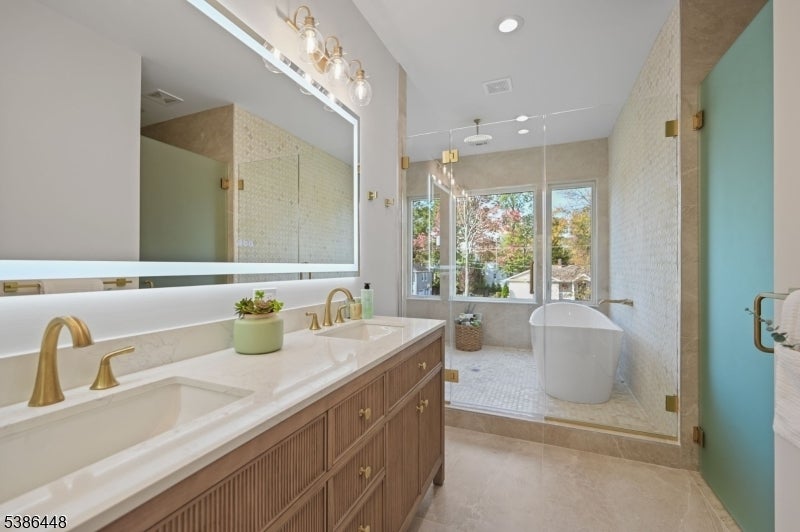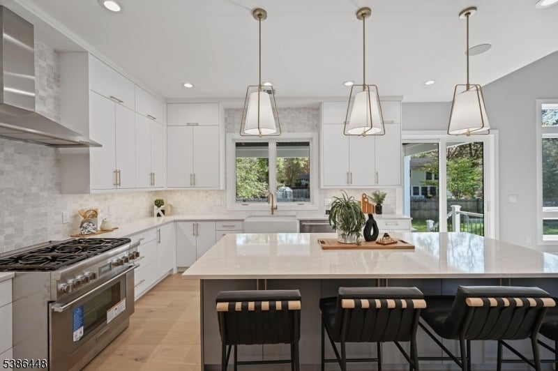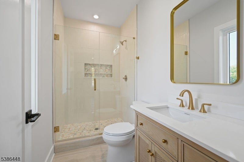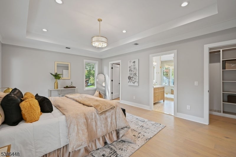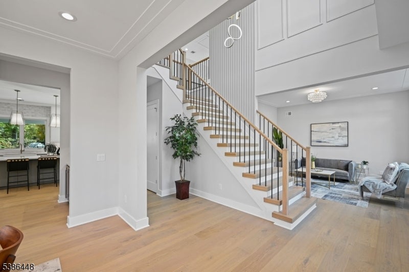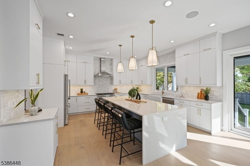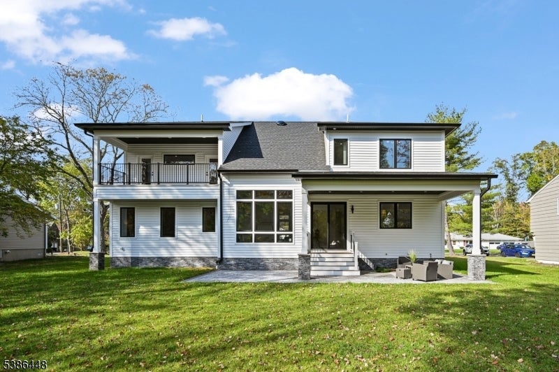 Welcome to this stunning 6-bed, 6.5-bath custom new construction home offering approx. 5,100+ sq ft of finished living space across 3 expansive levels, ideally situated on a 0.35 acre FLAT lot with Circular Driveway. The main floor is thoughtfully designed for modern living & entertaining, with a Covered Front porch entry into a dramatic 2-story foyer. Wide-plank HW floors & detailed custom trim set the tone throughout. The formal dining room flows seamlessly into the chef's kitchen, featuring high-end stainless steel appliances, quartz countertops, a center island with seating, a walk-in pantry, & a butler's pantry. The open-concept layout continues into the spacious Family room with 20ft Ceiling family room, anchored by an electric fireplace with Stone cladding & sliders open to a paver patio, a private guest suite w/ full bath, mudroom, powder room & convenient access to a two-car garage. Upstairs, the luxurious primary suite serves as a peaceful retreat with a private balcony, large designer WIC, & a spa-like bath feat. double vanities, a soaking tub, glass-enclosed shower. Three additional bedrooms are all en-suite, each w/ custom WIC; a laundry room with built-in cabinetry & sink for added convenience. The fully finished basement offers a large recreation room with a Wet Bar, media room, Exercise/Gym/Office room, 6th bedroom, full bath, & ample storage. 10-Year Builder's Warranty