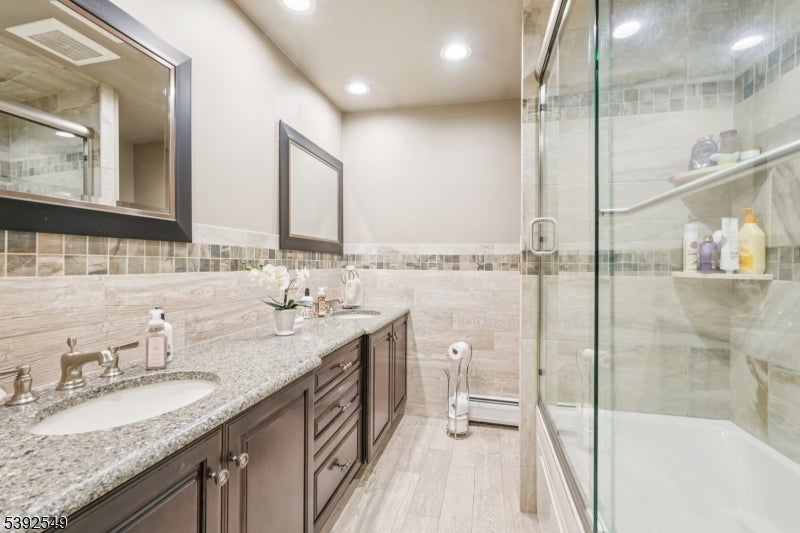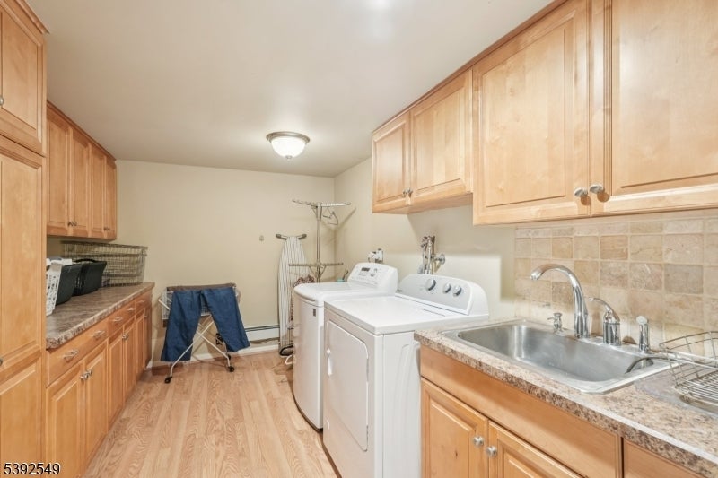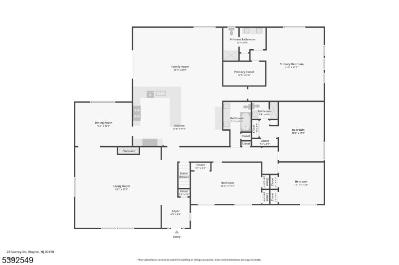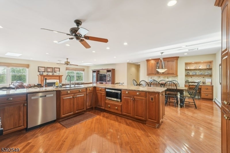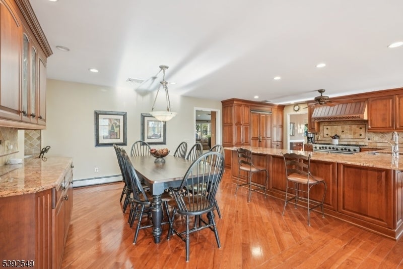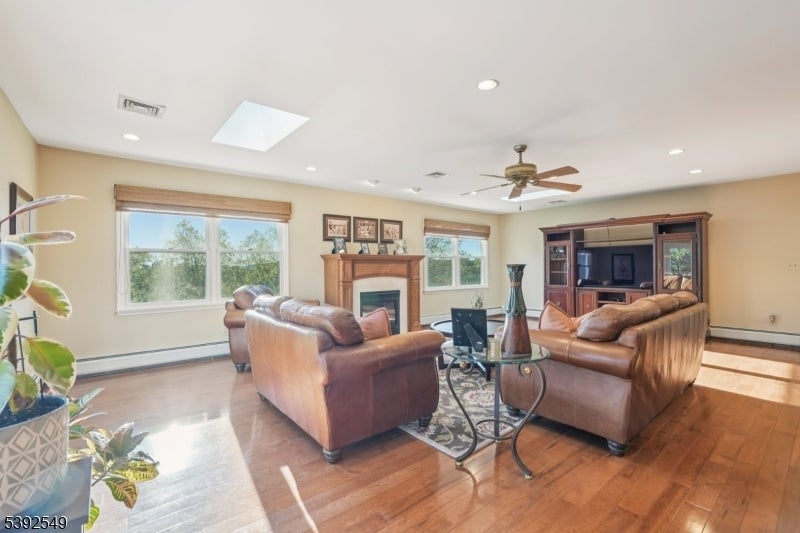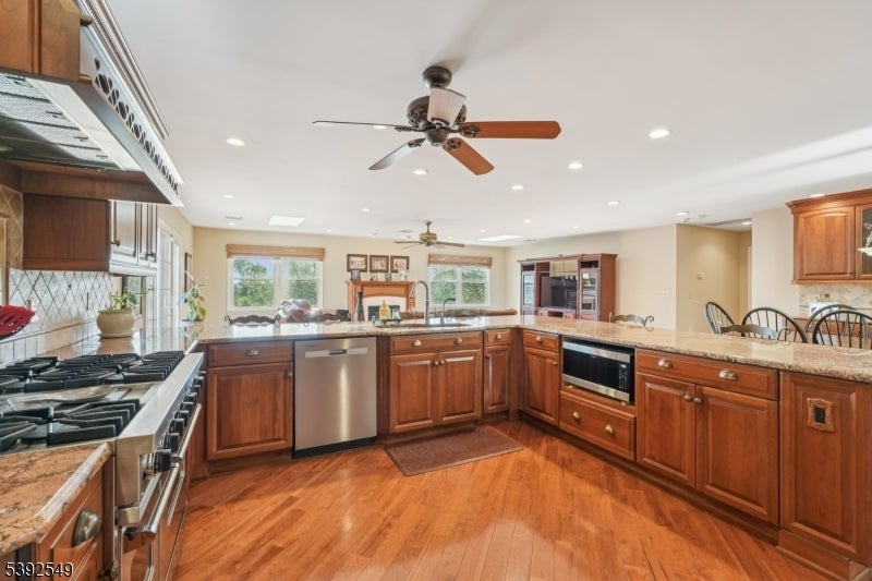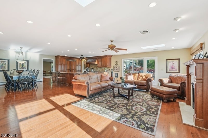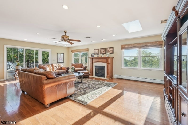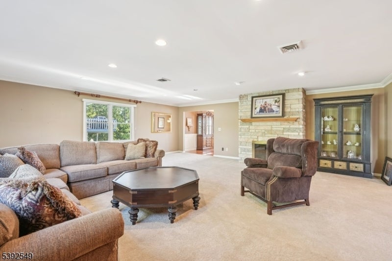 Welcome home to this beautifully maintained 4,900 sq ft Ranch nestled on a thoughtfully landscaped lot. Designed for effortless one-floor living, this spacious residence combines comfort, elegance, and functionality. Step into the welcoming entry foyer that opens to the bright, open-concept main living area. The spacious living room invites relaxation with its large windows and cozy gas fireplace, seamlessly flowing into the elegant dining room adorned with custom moulding an ideal setting for intimate meals and lively gatherings. The home chef's dream kitchen features custom cabinetry, marble countertops, stainless steel appliances, built-in desk, and separate dining area, opening to the inviting family room with large windows, fireplace, and access to the deck perfect for indoor-outdoor living. The main level offers two primary suites, each with a private en suite bath, along with two additional bedrooms and a full bathroom. The expansive finished lower level provides versatility with a second family room, gas fireplace, den overlooking the backyard, sliding doors to the patio, a third primary suite, additional bedroom, full bath, laundry, and ample storage. Outdoor living is equally impressive with a deck for al fresco dining, a patio ideal for entertaining, and a fully fenced yard offering privacy and space for recreation. Conveniently located near NYC transportation, shopping, and dining, this exceptional home offers the perfect blend of space, style, and convenience.