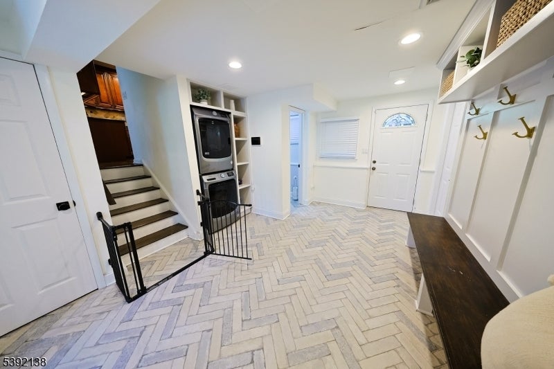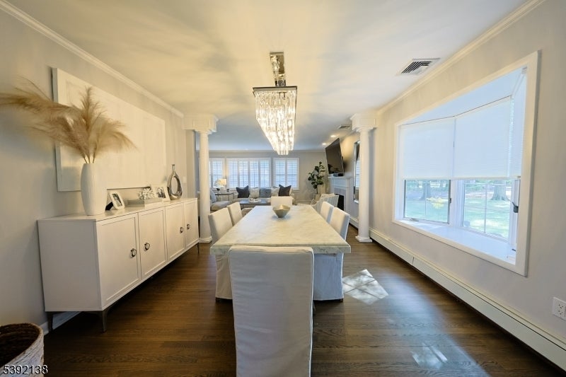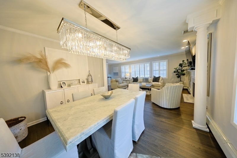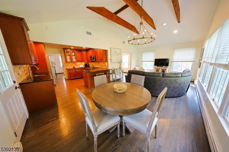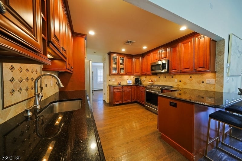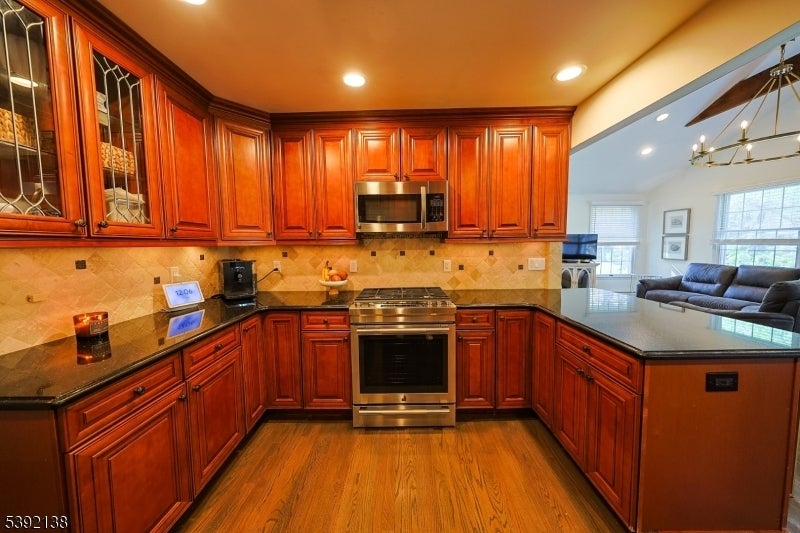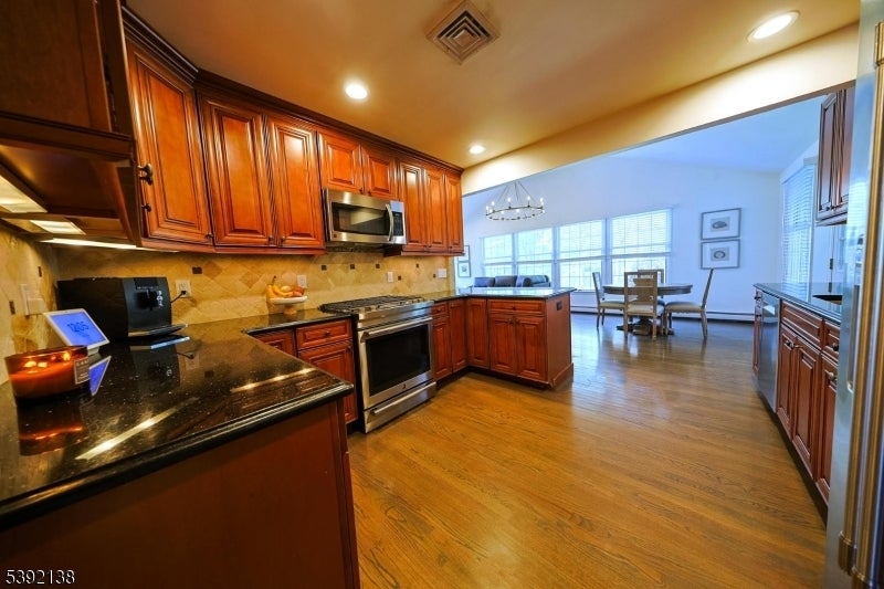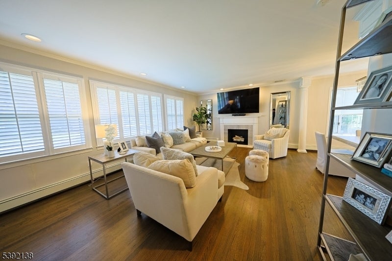 Welcome to this stunning residence boasting 4 spacious bedrooms and 2.1 beautifully appointed baths. Set on a flat park like lot in one of Florham Park's most sought after neighborhoods nestled on a quiet tree lined street. Enjoy a bright open floor plan ideal for modern living. This home greets you with an elegant foyer, with designer marble flooring leading into a sundrenched living room with fireplace and formal dining room with hardwood floors throughout. The updated kitchen offers custom cabinetry, stone countertops, new stainless steel appliances, and is open to the family room with a soaring cathedral ceiling, and a sunlit wall of windows, overlooking impressive yard. Direct access from family room to your own tranquil retreat with an expansive deck and a tree lined yard with no rear neighbors. The ultimate in privacy, relaxation and entertaining. The primary bedroom suite features a grand custom outfitted closet and a beautiful designer bath with double vanity and spa shower. Three more generous bedrooms on the same level, sharing a large full bath with double vanity and shower over tub. Two car attached garage walks into a large outfitted mudroom with custom built-in's, laundry room, and beautiful marble flooring. Spacious unfinished, lower level, which is perfect for recreation, exercise room, media room, or office. In close proximity to highly rated schools, as well as golf course, shopping, town, restaurants, and all major roads.
