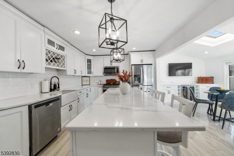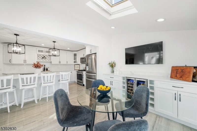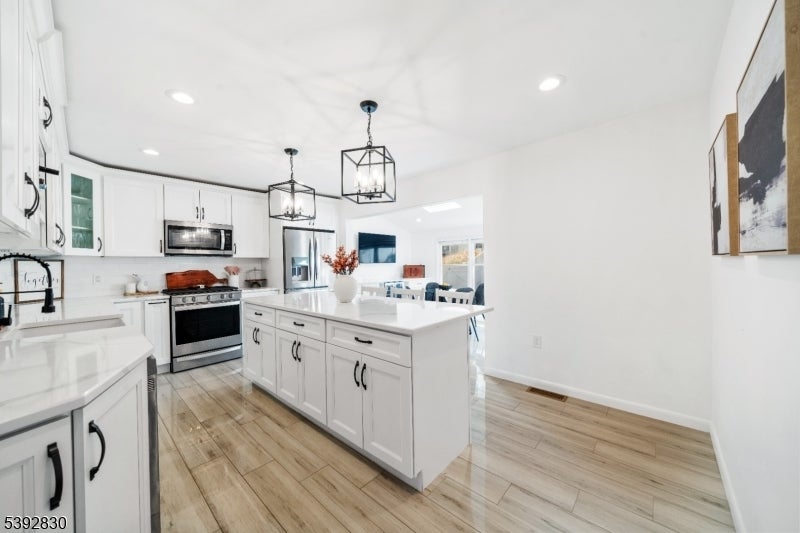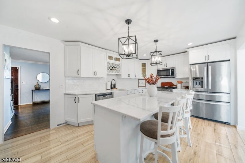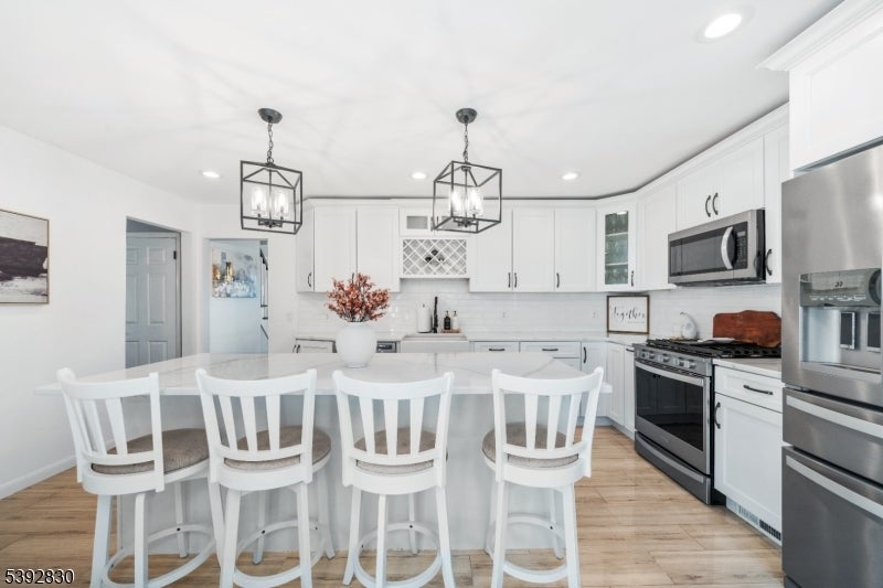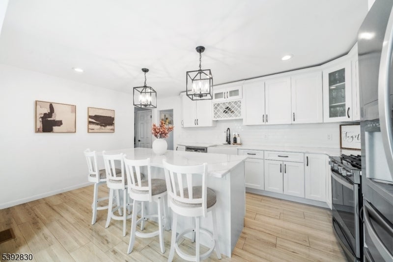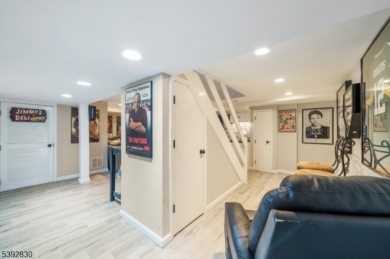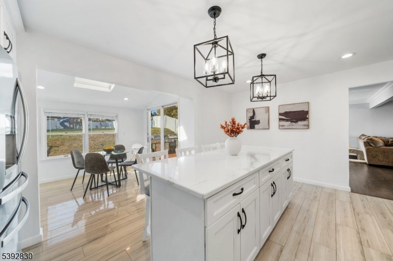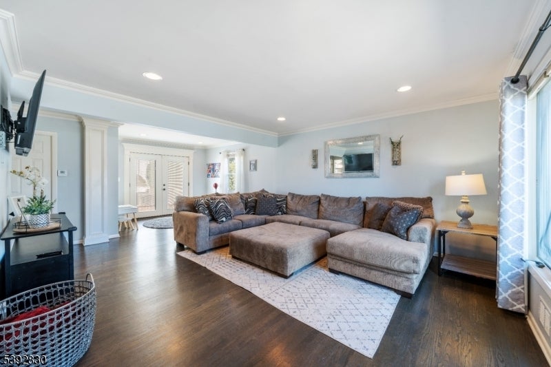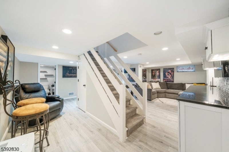 Welcome to this beautifully detailed home nestled on a quiet residential street near a highly rated elementary school. Set on an oversized lot, this property offers incredible space inside and out. Step into a large living room with full bathroom that has an easy walkout to the back deck. Adjacent formal dining room has custom gas fireplace. Each room is enhanced by elegant crown molding and timeless design touches. The updated kitchen impresses with bright white cabinetry, a large island with seating, and a separate dining nook overlooking the expansive backyard. Upstairs, the primary suite features high ceilings, a walk-in closet, and a private bath, while two additional bedrooms share their own bathroom. The finished basement adds even more living space with stylish finishes and a convenient half bath that is ideal for a rec room, gym, or play area. Sliding doors lead to a large Trex deck and a huge, fenced-in yard with plenty of green space for entertaining or relaxing. Easy commute to NYC transportation, ON3 campus and major highways. Move right in and enjoy a home that blends thoughtful detail, modern updates, and that perfect suburban lifestyle.