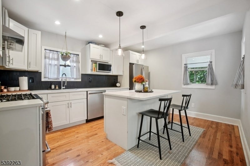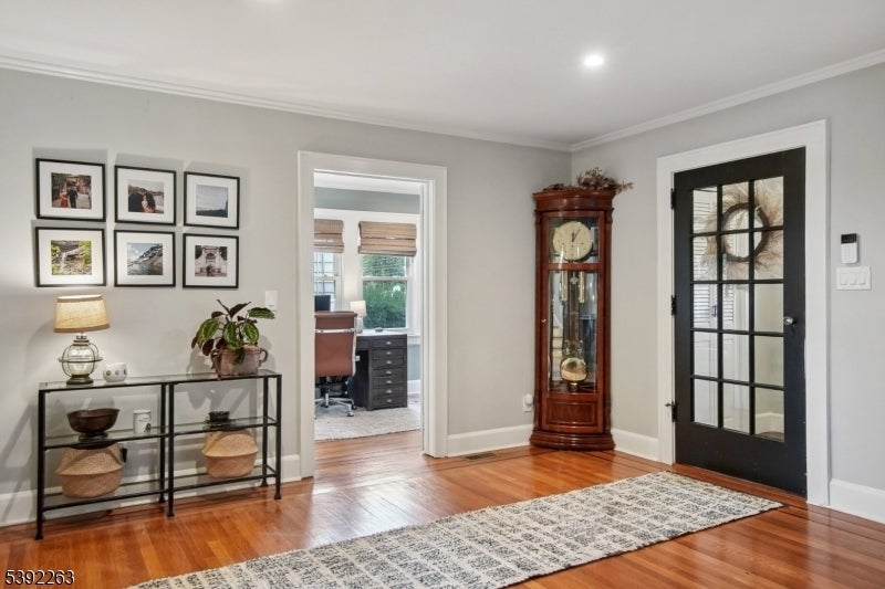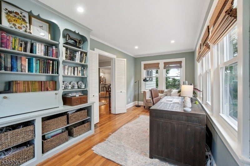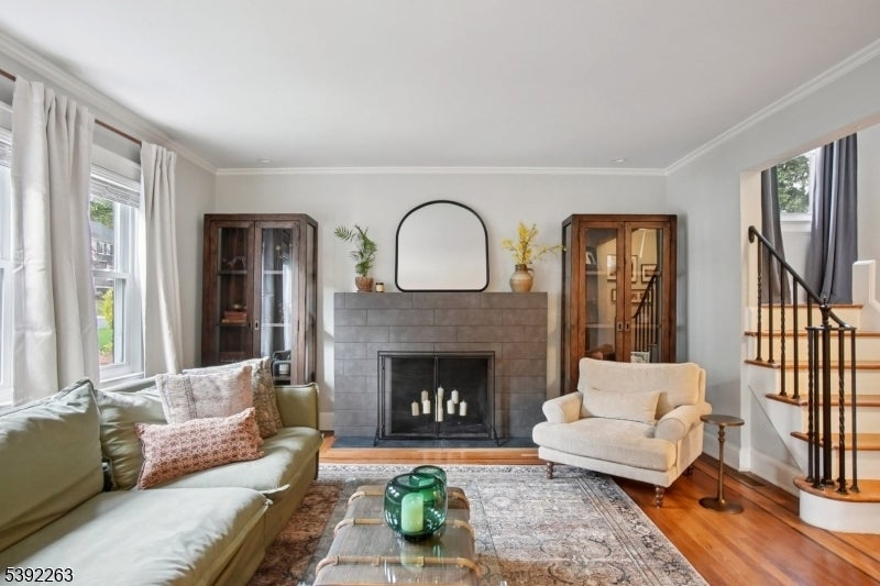 In the desirable Gregory section, this gorgeous 4 bed/3.5 bath home combines timeless charm with modern conveniences of an updated gourmet kitchen with center island, designer bathrooms, 2 zone central air and more. This home features entry vestibule, generous size livingroom with a working woodburning fireplace, a wonderful office with built in bookshelves and lots of windows, large dining room and updated kitchen with center island. The sun porch in the back is a real treat with plenty of space for dining and hanging out. Upstairs you will find 4 bedrooms and 3 full baths. The primary suite has a designer ensuite full bath and walk-in closet. The lower level is so well done you may never want to leave-with a kitchenette complete with new SS side by side fridge, beverage fridge, microwave/airfryer (all appliances are included in sale) and a whole large seating area to enjoy everything. And there is a walk out to the back yard! The backyard features stone patio, a flat grassy yard and wood fence. This home has been exceptionally well maintained with new roof, new HW heater, new fireplace SS liner and more. Easy commute to NYC. This is a don't-miss home!Highest and Best due Tuesday by 6pm. Guidelines in media.