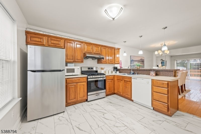 This move-in ready three bedrooms, two full bathrooms, one half bath single family home duplex style (without HOA fee) distinguishes itself by its construction in 1998, its spacious open concept layout, primary bedroom suite, beautiful private deck and attached one oversized car garage directly access to the house. Located at the Commerce Village section this home is very close to NYC Bus Stop, schools, shopping, convenient to Union Train Station to NYC and easy access to major highways. First level offers bright, airy eat-in kitchen with new tile flooring, new refrigerator, new gas range, new exhaust fan, breakfast bar opens to dining room and living room. Bamboo wood flooring in dining room and living room. Sliding door from living room access to newly painted deck. Half bath on this level. Second floor features primary bedroom with two closets and its own bathroom. Two additional bedrooms and hall bathroom. Ground level offers a large room can be an office or entertainment room, laundry room, storage space and garage on this level. Central air conditioning and furnace are three years, driveway newly paved. This home must be seen to be appreciated.
