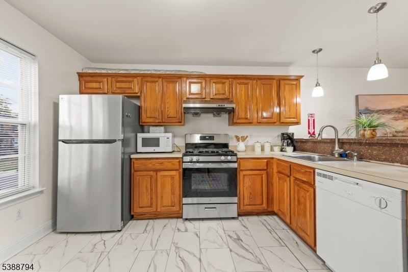 - Dishwasher, Dryer, Kitchen Exhaust Fan, Microwave Oven, Range/Oven-Gas, Refrigerator, Washer