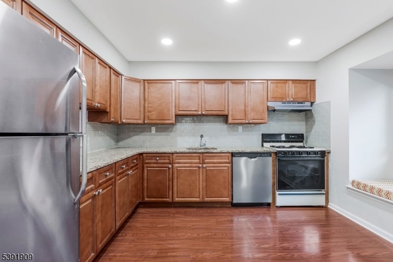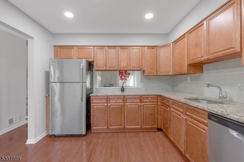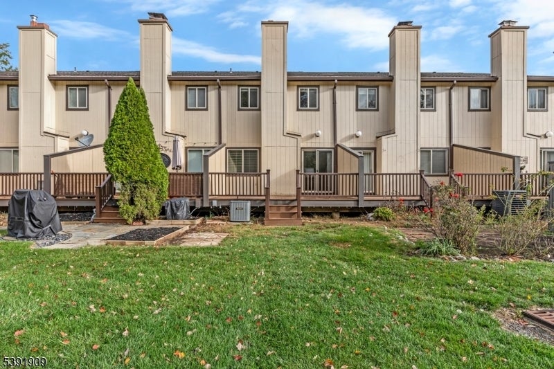 Situated in a desirable Bridgewater community that offers exceptional amenities, including tennis and basketball courts, and a playground right in your backyard, with the pool across the street. This beautifully maintained northeast-facing 2-bedroom, 2.5-bath townhome with a finished basement and large composite deck blends comfort, convenience, and community living. The first floor features an updated kitchen with new flooring that extends through the foyer and an updated powder room, a spacious dining area, and a bright living room with a cozy fireplace perfect for relaxing or entertaining. Step outside onto the expansive composite deck, ideal for morning coffee or outdoor dining, with community recreation just feet away. Upstairs, you'll find two generously sized bedrooms with ample closet space and an updated full bathroom with direct access from the primary bedroom. The finished basement offers additional living space with a family room, bonus room, full bathroom, and laundry/utility area. Additional highlights include solid-surface flooring throughout (no carpet), abundant closet and storage space, a Ring doorbell, and a smart thermostat. Two assigned parking spots and nearby visitor parking complete this move-in-ready home, conveniently close to shopping, dining, and Bridgewater's top-rated schools.