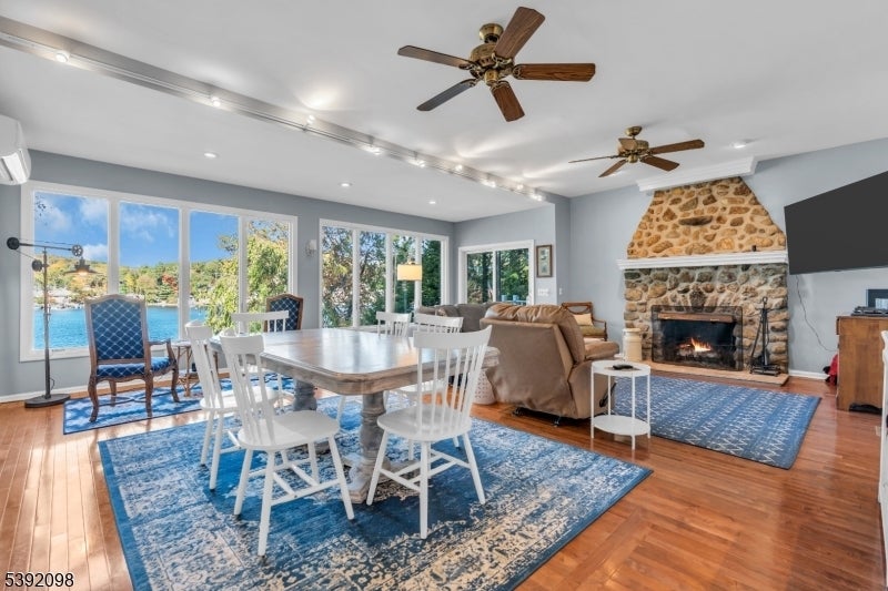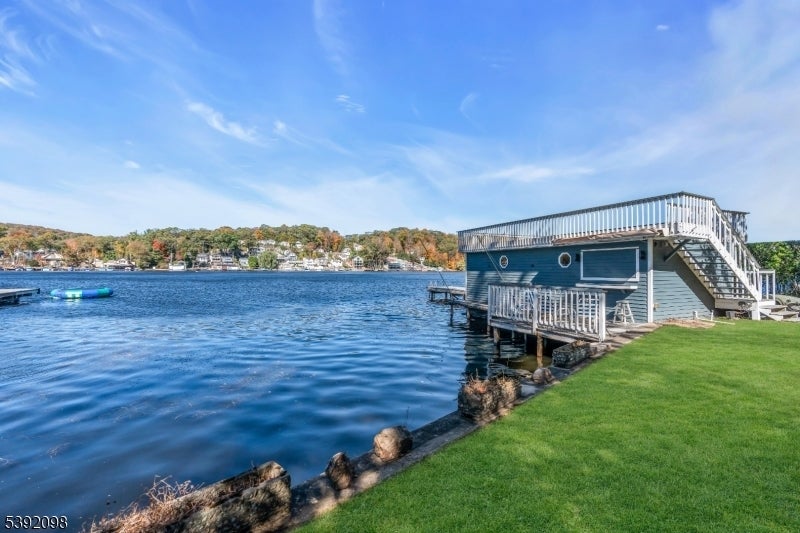Enjoy the very best of Lake Hopatcong in this charming 4-bedrm, 3-bath home located on what is considered the finest street on the lake a property designed for entertaining & relaxation. The entry level welcomes you with an open floor plan that frames stunning lake views from the kitchen, family rm, & dining area. Here you'll also find a master suite, a 2nd bedrm, a cozy den, creating a perfect blend of comfort & convenience. Upstairs, 2 generously sized bedrms share a dedicated full bath & offer beautiful views of the water, making every sunrise & sunset memorable! The home sits on a level, tree-lined street that feels worlds away, bordered by acres of untouched woodlands for unmatched privacy and serenity. Every bedrm captures the beauty of the lake. The property boasts one of the best sunset vantage points in a coveted cove. Step outside to enjoy 100 ft of level lakefront, complete with a boathouse featuring a roof deck, side-bar ideal for summer gatherings. A large detached garage, workshop, and shed provide all the space you need for storage and hobbies. Parking is never a concern, room for nine vehicles plus ample street parking. Mature trees & hedges bordering the property create natural privacy, ensuring your retreat remains peaceful & secluded. This rare combination of location, accessibility, and waterfront amenities makes this property truly one of a kind. An ideal blend of house, lake features & beautiful surroundings is hard to match anywhere on Lake Hopatcong.