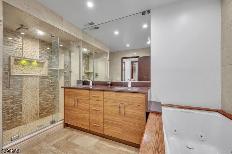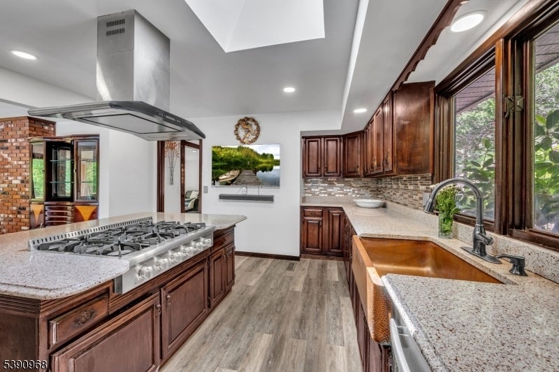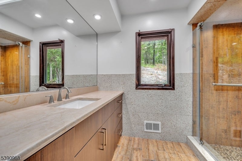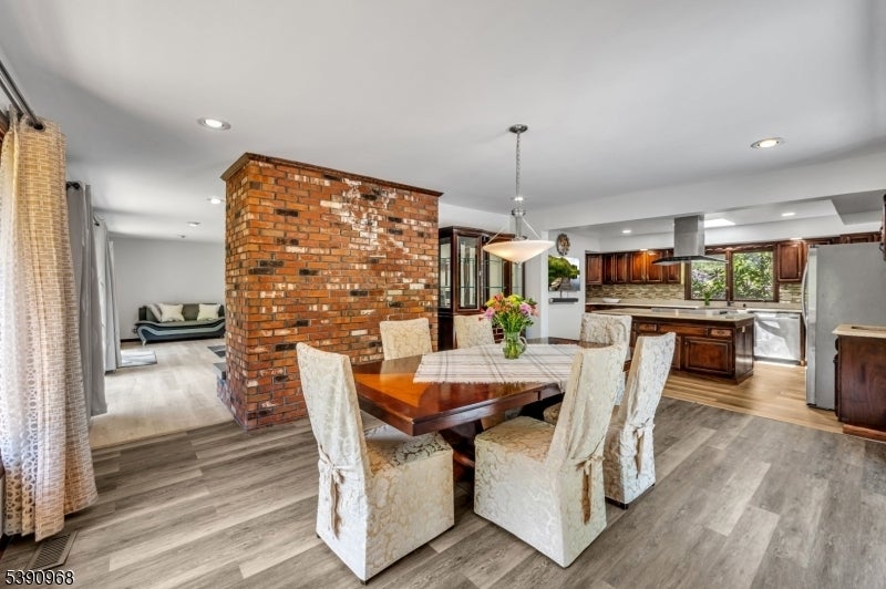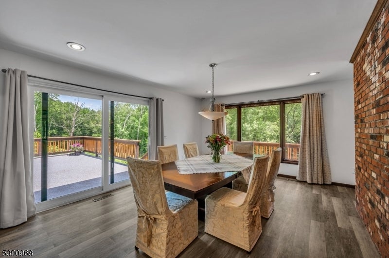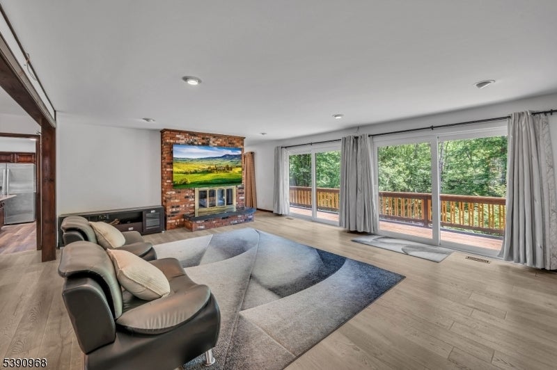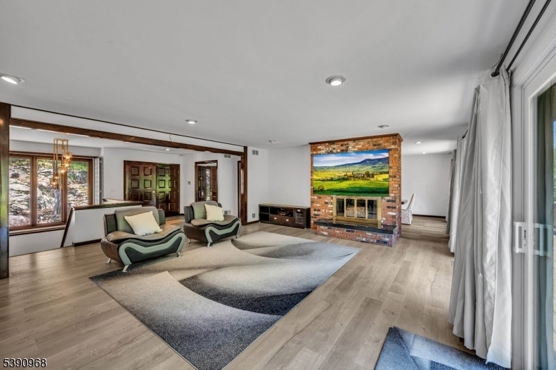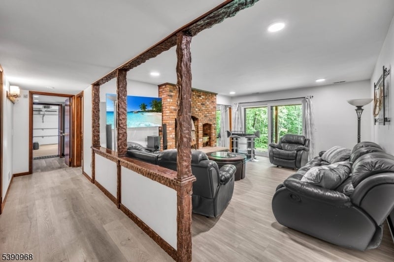 Nestled on 2.85 private, wooded acres, this spacious 5-bedroom, 3-bath custom raised ranch offers a tranquil outdoor setting and plenty of potential. The home needs some work but has great bones and is being sold strictly as is. Recent updates include a new HVAC system (installed 9/3/25), new roof, new flooring, and new sliders, plus coverage with a Cinch home warranty for added peace of mind.The bright kitchen features stainless steel appliances and a dishwasher (sold as is) and opens to a formal dining area and large living room with a wood-burning fireplace. Step onto the wraparound porch to enjoy peaceful views and the surrounding natural beauty.The main level includes a primary suite with an en-suite bath and walk-in closet, plus a second bedroom and a full bath with soaking tub and rain shower. The finished lower level adds even more living space with three additional bedrooms, an office, recreation room with fireplace, full bath, laundry area, and a two-car garage. Come and make it your own. Fireplace chimneys flues sold as is as well. Boonton address RockawayTWP. Schools and Taxes.