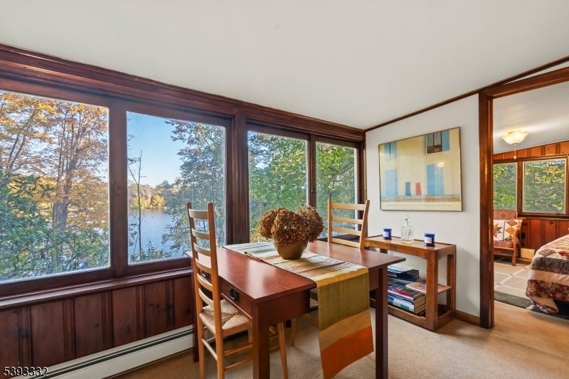 RARE LAKEFRONT OPPORTUNITY!! Though the shoreline is association-owned, this home conveys the use of the lakefront area corresponding to the home complete with floating dock, fixed waterside deck, permission for future steps, and an aluminum canoe! Launch, lounge, and toast the sunset from day one. Inside, a 2-bedroom + loft (ladder access) plan flows across the kitchen, living, and dining areas, warmed by knotty pine and stone, a wood-burning insert, and a skylight. Practical updates: NEW boiler, NEWER water-filtration system, 2016 Roth oil tank, dishwasher, and main-level laundry. Flagstone steps greet you; 2004 septic has had light second-home use. Outdoors, the grounds are a four-season showcase. Layered plantings wrap the property flowering trees (dogwood, witch hazel, redbud, river birch, juneberry), shrubs (rhododendron, andromeda, holly, spirea, azalea, roses, lilac), evergreens, and broad perennial beds (heuchera, ferns, sedum, goatsbeard, daylily, hydrangea, Japanese anemone, a standout hosta collection). A mulched porch with container gardens, picnic table, and classic swing invite lazy afternoons; ask to see spring-bloom photos! Enjoy private membership access to Highland Lakes Country Club's five lakes and seven sandy beaches - Beach 1 is a quick stroll from the house with playground, tennis, softball, etc. Winter fun at nearby Mountain Creek! Turn the key and enjoy this four-season move-in ready and garden-lover approved home! BEST & FINAL DUE 12PM TUES, NOV 4!!