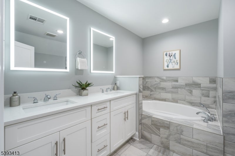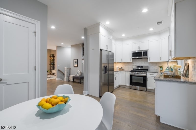 LUXURY 2-BED/2.1 BATH TOWNHOUSE IN CHARMING NEW PROVIDENCE COMMUNITY CLOSE TO EVERYTHING! Just 20 units enjoy a private setting tucked off South St, blocks from Murray Hill train station & downtown w/ great restaurants & shops. High-end architectural features w/ columns, covered balconies w/ balustrades, copper roof accents, etc. Inside, thoughtful touches continue w/ carefree LVP flooring, open farmhouse-style staircases, oversized attached single-car garage w/ walk-in storage closet & first-floor Laundry. Ensuite Bedroom sits at the back of the 1st Level w/ access to a small Backyard patio, walk-in closet & updated Full Bath w/ tub/shower combo & single vanity w/ quartz countertop. 2nd Level is for living, relaxing & dining, boasting a large Living Room w/ vaulted ceiling, modern brass light fixtures, open industrial shelving & applied-molding accent wall. Sliders to Juliet balcony in front & covered cozy balcony in back offer a nice cross breeze as you relax or entertain. Eat-in Kitchen is clean & crisp w/ white cabinetry to the ceiling, granite countertops, subway tile backsplash & glistening SS appliances inc. 5-burner gas range, dishwasher & professional pull-down faucet. 3rd Level is a private sanctuary w/ large Primary Bedroom featuring tray ceiling, another covered balcony perfect for morning coffee, Walk-in-Closet w/ organizer system inc. drawers & ensuite Bath w/ walk-in shower w/ river rock floor, soaker tub & double vanity w/ quartz countertop.