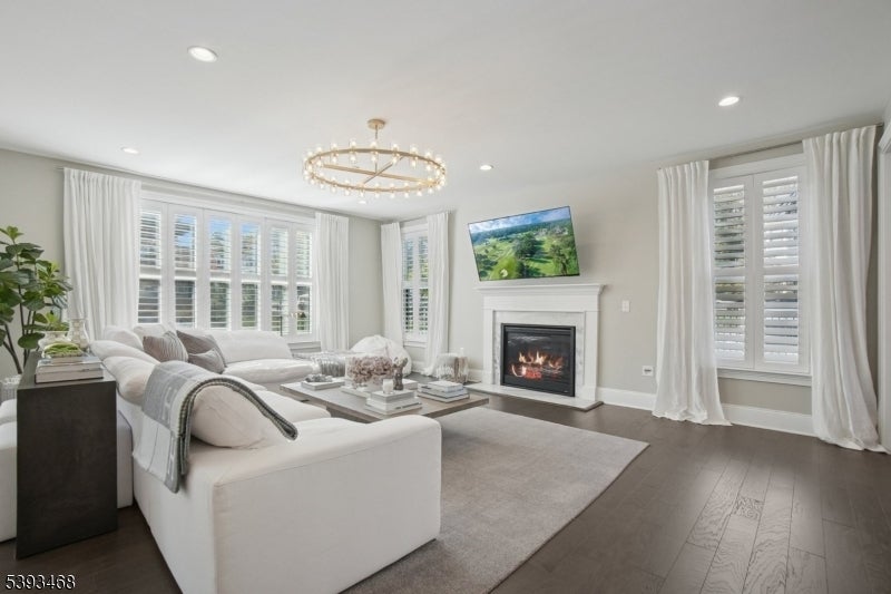 Experience refined living in this designer-crafted end-unit residence nestled within The Villas at Warren, one of the area's most desirable luxury communities. Featuring an open-concept layout and impeccable finishes, this home offers effortless elegance across two levels. A stunning chef's kitchen with custom cabinetry, quartz countertops, and premium appliances flows into the sunlit great room anchored by a gas fireplace. The primary suite is a serene retreat with a spa-inspired bath and generous walk-in closet. Upstairs, spacious bedrooms and a versatile loft provide flexibility for guests or work-from-home needs. Enjoy the ease of low-maintenance living with all the benefits of a private home complete with a finished two-car garage, enlarged deck, and access to Warren's top-rated schools, downtown, and convenient NYC and highway access.