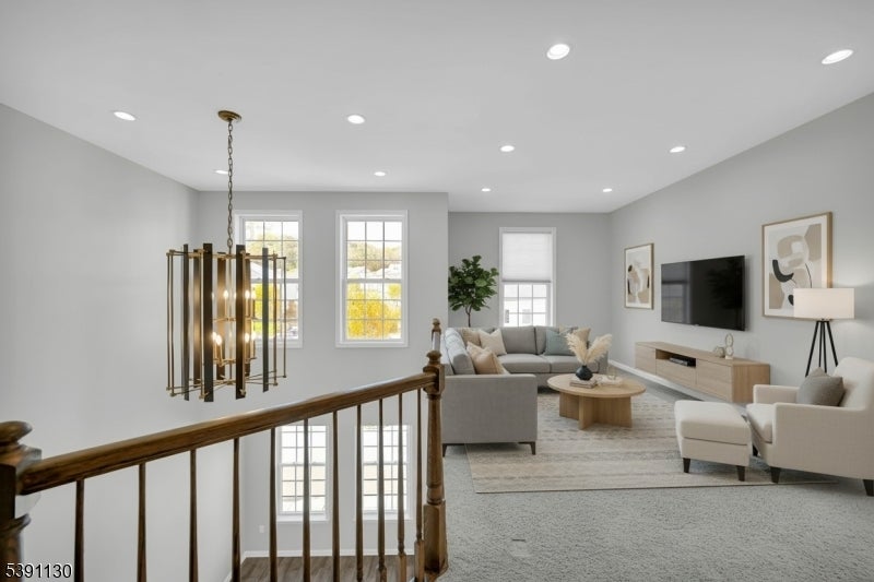 Welcome to the highly coveted Yale model in the breathtaking Hilltop at Cedar Grove! Built less than five years ago, this immaculate townhome offers the perfect blend of style and sophistication. The gourmet kitchen features stainless steel appliances, granite countertops, and an open-concept layout that flows seamlessly into the bright living and dining areas with soaring volume ceilings. The main level showcases luxurious vinyl plank flooring, a large pantry/storage closet, powder room, and a private balcony ideal for morning coffee or evening sunsets. Upstairs, discover three spacious bedrooms, including a serene primary suite with a spa-like bath and expansive walk-in closet. The second and third bedrooms are generous in size, complemented by a bright loft area, full bath, laundry room, and oversized storage closet. Just professionally painted and beautifully finished with custom lighting, detailed woodwork, and elegant wallpaper. Enjoy a one-car garage, driveway parking, and resort-style amenities clubhouse, infinity-edge pool, fitness center, BBQ areas, and shuttle to Upper Montclair Train Station all moments from shopping, parks, dining, and major highways.