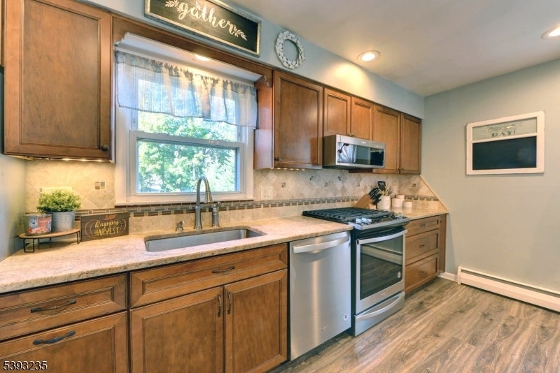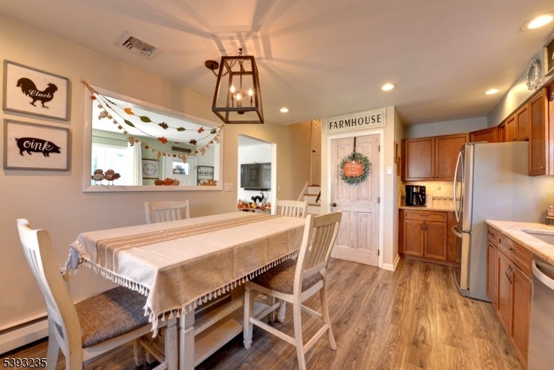 Charming Split-Level Home in Pequannock! This delightful 3-bedroom, 1.5-bath split-level residence boasts 1,559 sq. ft. of cozy living space on a level 75 x 150 lot. With low-maintenance vinyl siding, the exterior is both appealing and practical. Inside, you'll find a thoughtfully designed layout that optimizes space and functionality. The welcoming living area flows seamlessly into the updated eat-in kitchen, featuring granite countertops, stainless steel appliances, ample storage, and newer lighting.The three spacious bedrooms provide plenty of room, complemented by a full bath on the same level. The ground floor includes a versatile room, dining/living area, garage access, and a convenient half-bath. A standout feature is the charming family room, filled with natural light from numerous windows, equipped with a newer split heat/cool system, and offering sliders that lead to a lovely paver patio, wood fire pit, and fenced yard a fantastic spot to relax and enjoy.The fully finished basement includes a recreation room, office area, laundry, and utilities. Additional covered parking is available with a carport, along with extra parking spaces. This home is conveniently located near town parks, an elementary school, and a variety of shopping options. Pequannock Township boasts a vibrant community atmosphere, offering plenty of outdoor activities and amenities for all ages. Schedule a showing today!