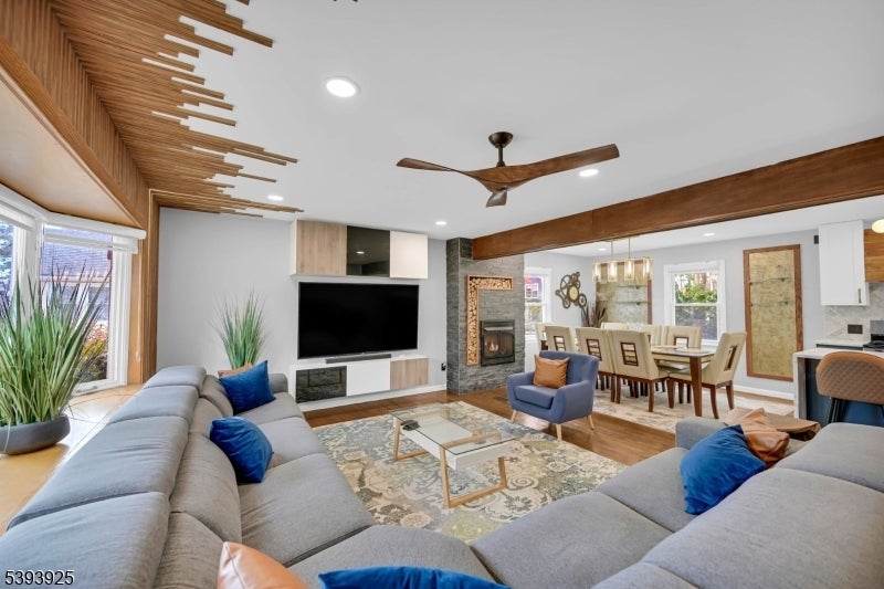Beautifully Designed 3-Bedroom, 3.5-Bath Home in the Heart of Livingston! Welcome to 35 Grand Terr, a stunning 3-level home offering thoughtfully designed living space on a flat lot. The inviting open-concept main floor features a bright living room with an elegant fireplace, spacious dining area, and a modern kitchen with a center island perfect for entertaining and gatherings. Enjoy direct access to a large patio, ideal for outdoor dining, relaxation, and year-round entertaining. A powder room and convenient garage access complete this level.Upstairs, the primary suite provides a peaceful retreat with generous closet space. Two additional bedrooms, a full hall bath, and a laundry area add functionality and comfort to this well-designed floor. The finished lower level offers exceptional versatility with a spacious recreation room, wet bar, full bath, and utility area ideal for a home gym, media room, or guest suite.Additional highlights include an attached garage, ample storage, and a flat, usable yard perfect for play or entertaining. Conveniently located near top-rated Livingston schools, NYC transportation, shopping, and parks, this 3-bed, 3.5-bath home blends modern living with suburban charm.