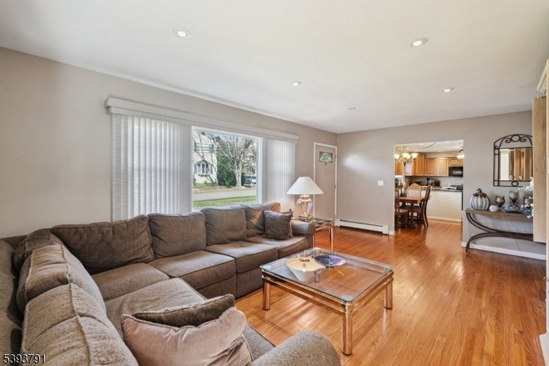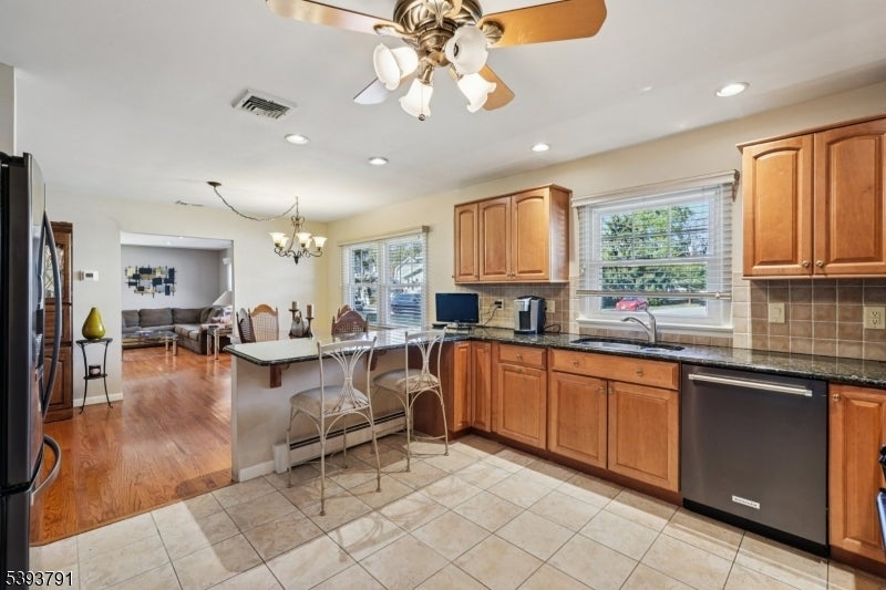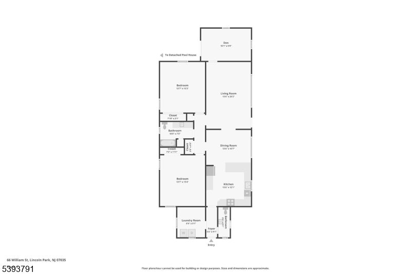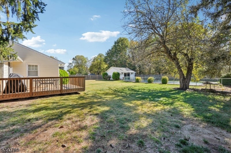 Welcome home to this beautifully maintained 2-bedroom, 1.5-bath Ranch nestled on a fully fenced, level lot in the heart of Lincoln Park. Step into the welcoming living room filled with natural light, offering a comfortable atmosphere that invites relaxation and connection. A large cased opening leads into the beautifully appointed dining room, an ideal setting for intimate meals or hosting gatherings. The dining room flows seamlessly into the eat-in kitchen, a home chef's dream featuring custom cabinetry, granite countertops, black stainless steel appliances, and bar seating. Just off the main living area the primary bedroom offers a large closet and is your personal retreat at the end of the day. The second bedroom also includes a generous closet. The den provides a versatile space perfect for a third bedroom or home office. A laundry room, full bathroom, and convenient powder room complete this thoughtfully designed single-level home. Sliding glass doors from the den lead to the spacious rear deck, ideal for outdoor grilling and al fresco dining, and overlooking a generous backyard with plenty of space for recreation and relaxation. Enjoy summer days by the in-ground pool, complete with a pool house retreat offering vaulted ceilings, skylights, a full kitchen, living room, and full bath, perfect for guests or bonus living space. Ample driveway parking and a prime location near NYC transportation, shopping, and dining make this home the total package.