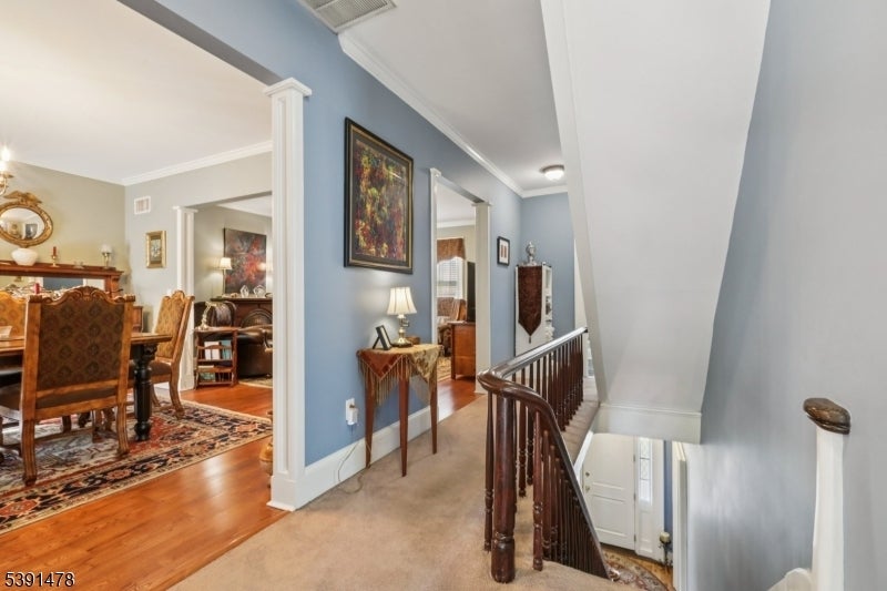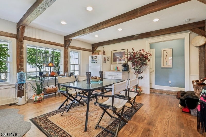 Stunning Historic Victorian style custom home in the Heart of Parsippany! This impeccably maintained home showcases recently refinished original wide-plank hardwood floors and breathtaking architectural detail throughout. Work from home in multiple office/den spaces on either level! The first floor features a large primary suite with beautiful ensuite bathroom and large custom closet, and 3 large flex spaces currently utilized as a living room, library, and sunroom/game room. Continue up the custom wood banister to the second floor, where you'll find two generously sized bedrooms, a family room, formal dining area with floating hardwood floors, and beautiful moldings. The eat-in kitchen boasts cathedral ceilings, newer appliances, built-in shelving, a 5-burner natural gas range, and sliding doors to a private second-story deck offering a separate entrance and direct access to the yard. Laundry is conveniently located off the kitchen. The landscaped backyard features 12x24 barn/stable perfect for storage or creative space. Basement accessible by Bilco doors offers additional storage. Key updates include: newer roof (approx. 4 years), 2019 driveway, 6 year old hot water heater, and recently replaced A/C and furnace . Located on over half an acre in the prestigious Parsippany School District, with public water, sewer and gas, low taxes and updated utilities, this is one of the most visually striking and historically significant homes in the area. A true gem don't miss it!