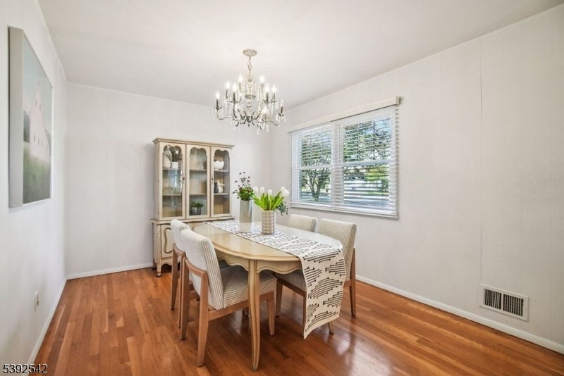 Welcome home to this charming 4 bed, 1.5 bath Colonial in the desirable Oak View neighborhood of Bloomfield. The first floor boasts a bright living room, formal dining, and a sparkling white eat-in kitchen with stainless steel appliances, pale granite, and white oak flooring. A convenient powder room is also on this level. Enjoy beautiful hardwood floors in the living and dining rooms, newer thermal windows, recessed lighting, central air, and excellent closet space throughout. Upstairs, you'll find four spacious bedrooms and a full bath with a tub shower. The finished basement offers a fantastic bonus area perfect for a playroom or rec room. Head outside to a beautifully landscaped backyard with a spacious patio and mature trees, creating a peaceful, private oasis. A one-car attached garage and a wide driveway with space for two more cars complete this perfect picture. Plus, you're just moments away from shopping, major highways, and NYC transportation.