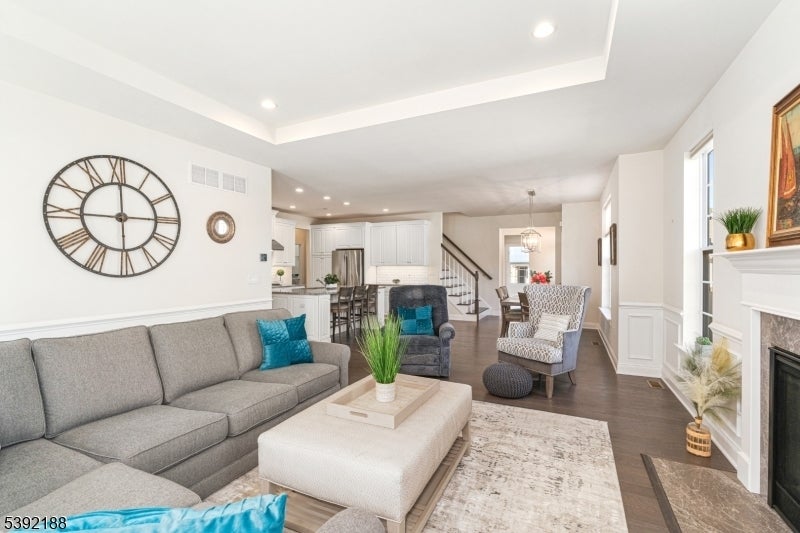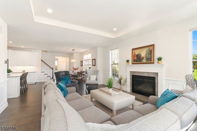 Discover luxury, comfort, and convenience in this beautifully maintained Fairwater end-unit townhome, lovingly cared for by its original owner and filled with upgrades. Nestled in the desirable Regency at Readington, a premier 55+ Toll Brothers community in the heart of Hunterdon County, this home offers the perfect blend of sophistication and ease. As an end unit, it's filled with natural light from extra windows while providing added privacy. The inviting covered entry opens to a spacious, open-concept layout with soaring ceilings, hardwood floors, and a bright great room with a fireplace that flows into the gourmet kitchen and dining area perfect for everyday living or entertaining. The kitchen features granite countertops, a large center island, and stainless-steel appliances. The serene primary suite includes tray ceilings, two walk-in closets, and a luxurious ensuite bath with dual sinks and a walk-in shower with seat. A second ensuite bedroom is ideal for guests or a home office. The first floor also includes a powder room and laundry area for convenience. Upstairs, a spacious loft offers flexible living space and ample storage. Enjoy morning coffee or evening gatherings on the private patio, plus a two-car garage. Residents enjoy a clubhouse, fitness center, outdoor pool, bocce courts, and more all close to NJ Transit, Routes 22, 78 & 287, shopping, dining, and parks. Move-in ready and waiting for you!