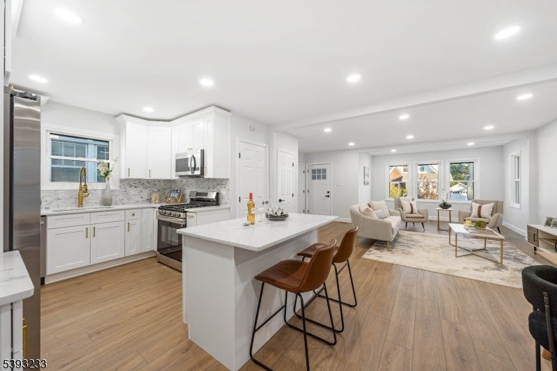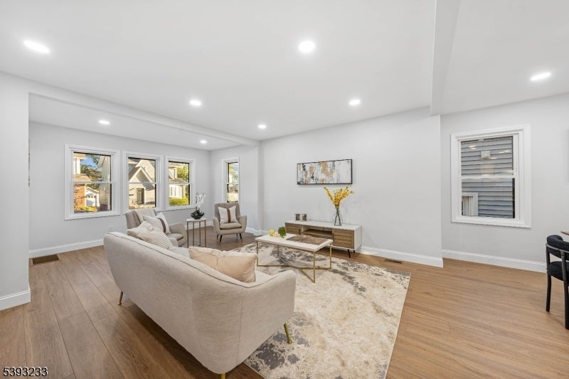 This Colonial home, fully updated in 2025 with top-to-bottom renovations designed for modern living, is ready for you to move in. Every major system has been redone including brand new windows, siding, plumbing, electric, HVAC, heat, and roof so you can move right in worry-free. The first floor welcomes you with a living room filled with natural light, a formal dining room perfect for gatherings, and a beautifully remodeled kitchen featuring a large center island, new cabinetry, and plenty of counter space. A private office offers the ideal spot for remote work or study, while a first-floor bedroom with a full bathroom provides flexible options. A half bath completes the main level. Upstairs, you'll find three comfortable bedrooms and a stylish full bathroom, all freshly updated with modern finishes. The third level offers a secluded hideaway perfect for a fifth bedroom, creative studio, or quiet retreat. Downstairs, the unfinished basement includes laundry and a spacious recreation area that?s ready for your personal touch. Outside, enjoy brand new siding, a new roof, and great curb appeal just a block from local bus routes. Commuters will love the easy access to the Garden State Parkway and Route 78, making travel throughout New Jersey and into NYC effortless.